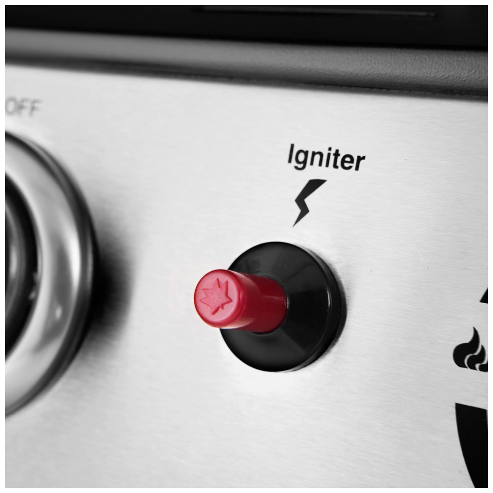 Aquecimento rápido e uniforme Três queimadores controlados separadamente oferecem uma potência total de cozimento de 25.500 BTUs com um simples toque do ignitor piezo integrado, el…