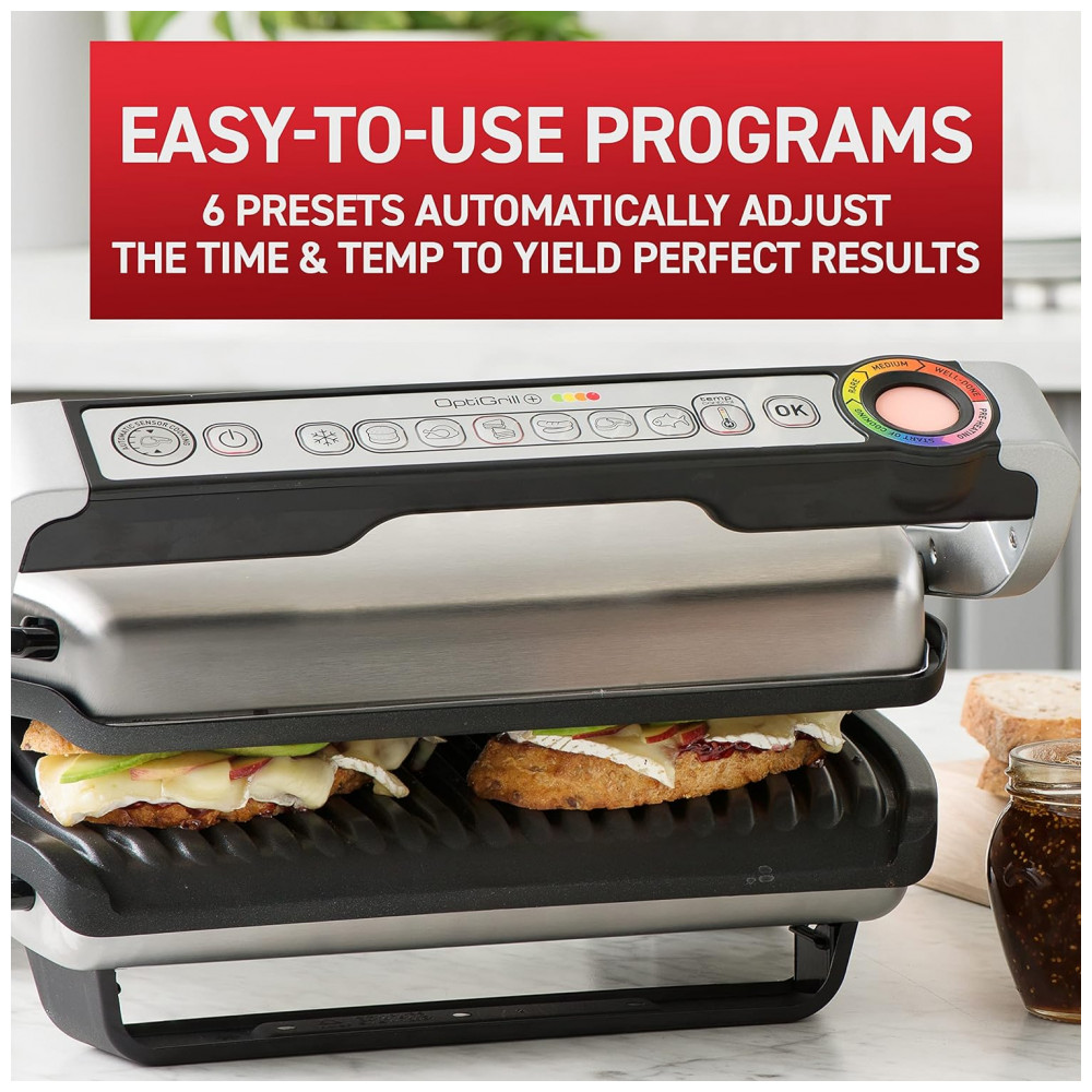 Primeira grelha elétrica interna que cozinha adaptando seus ciclos de grelha à espessura dos alimentos 6 programas de confecção automática para Hambúrguer, Aves, Sanduíches, Salsic…
