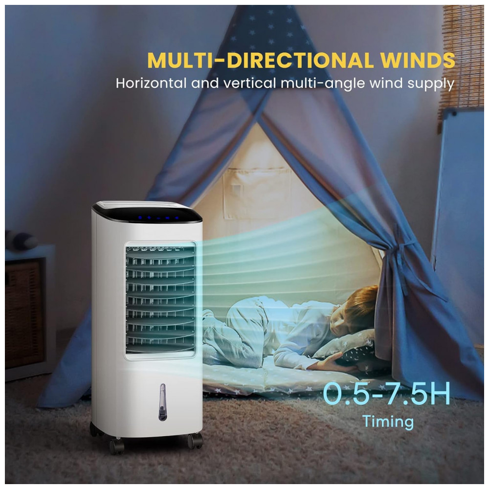 AMIGO DO MEIO AMBIENTE Com 65 W de potência, este refrigerador de ar evaporativo mantém um ambiente habitável em qualquer sala sem quebrar o banco como ar condicionado central É livre de flúor e usa apenas a quantidade mínima de eletricidade necessária para resfriar uma área durante este verão quente econômica e ecologicamente correta 3 MODOS AJUSTÁVEIS Possui 3 modos de velocidade do vento ajustáveis para controlar melhor o ambiente, você pode alternar entre modo Normal, Natural ou Sleep Além disso, a direção do vento pode ser ajustada para cima , baixo e esquerda , direita E a velocidade do vento pode ser personalizada Alta, Média ou Baixa, atenderá às suas diferentes demandas FUNÇÃO DO TEMPORIZADOR Os controles do temporizador funcionam para 0,5 7,5 horas, então não se preocupe em deixar o refrigerador ligado quando você sair ou enquanto estiver dormindo Todas as configurações são operadas por um painel de controle ou controle remoto fácil de usar conveniência e conforto definitivos REFRIGERAÇÃO E UMIDIFICAÇÃO RÁPIDOS Projetado com um sistema avançado de circulação de água de camada dupla que purifica a água e a mantém fria durante a operação Inclui um recipiente de gelo de alta densidade para ajudar a resfriar a água mais rapidamente Como alternativa, você pode adicionar cubos de gelo à bandeja de água para resfriar o ambiente mais rapidamente Além disso, o tanque de água de grande capacidade 7L garante que este refrigerador funcione por um longo tempo sem adição frequente de água BARREIRA DE SEGURANÇA TRIPLA aprovado pela ETL garante mais segurança.