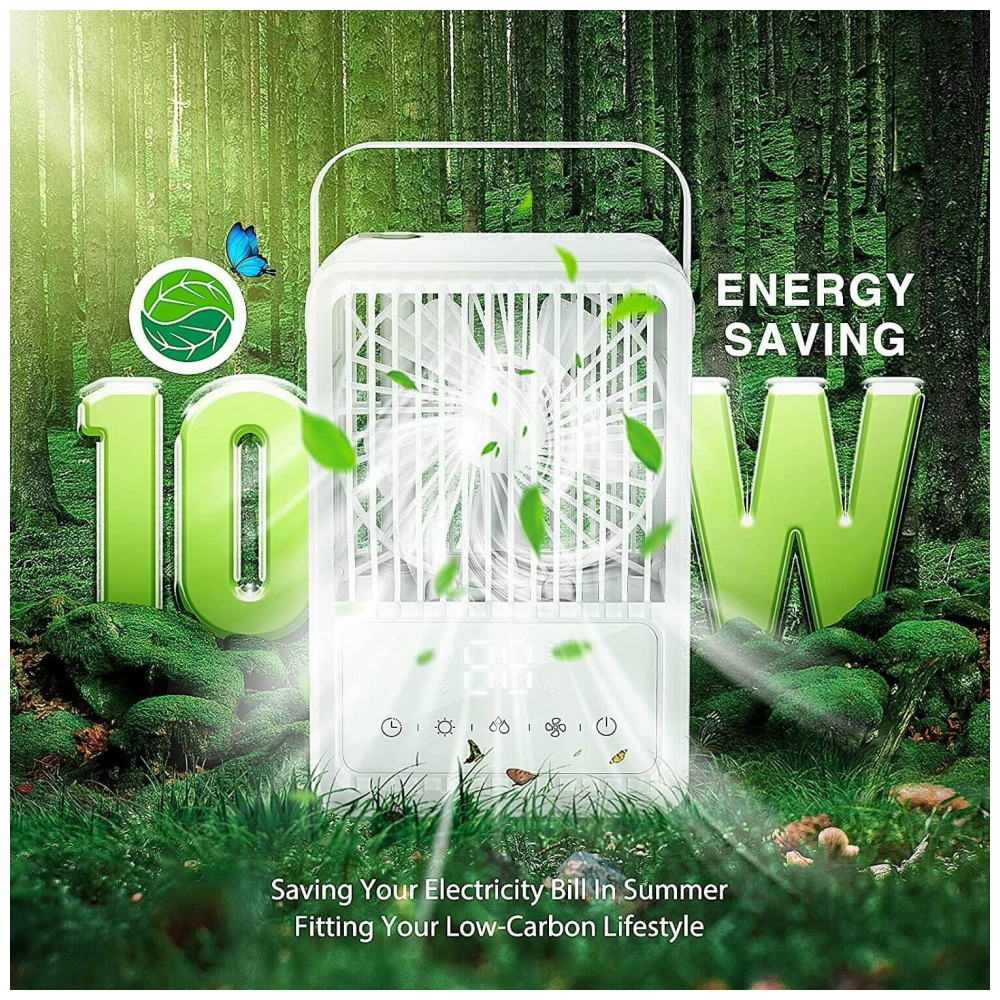 O refrigerador de ar evaporativo possui luzes noturnas 7 cores diferentes, e o ar condicionado pessoal cria um ambiente confortável e relaxante para dormir.
