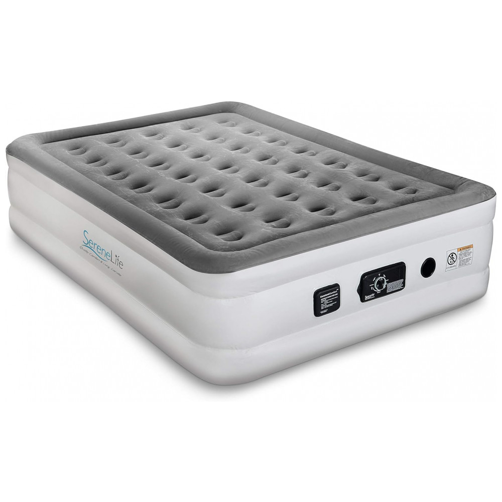 Colchão Inflável Casal com Bomba Embutida, Para até 225KG, SereneLife SLABFL60, Cinza