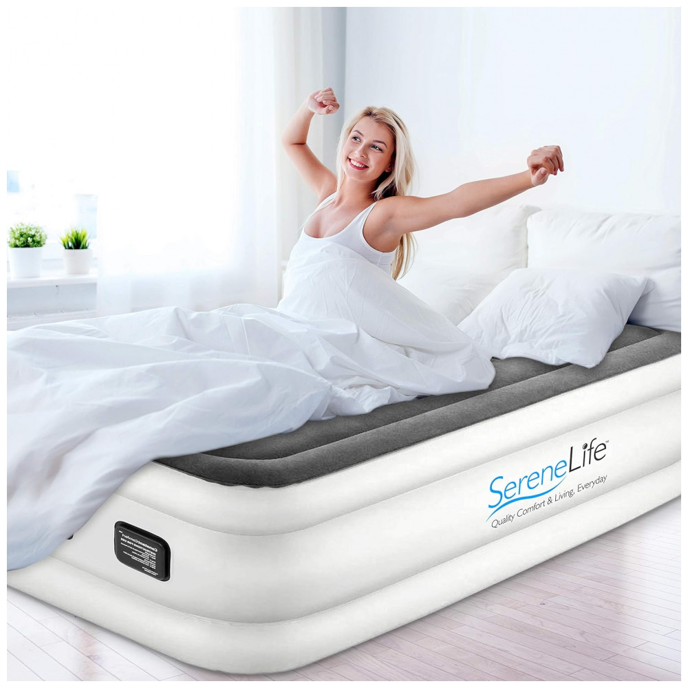 PROJETO ELEVADO DE O colchão de ar elétrico inflável elevado SereneLife Premium com bomba embutida é elevado a do chão, portanto, entrar e sair da cama é muito mais fácil.