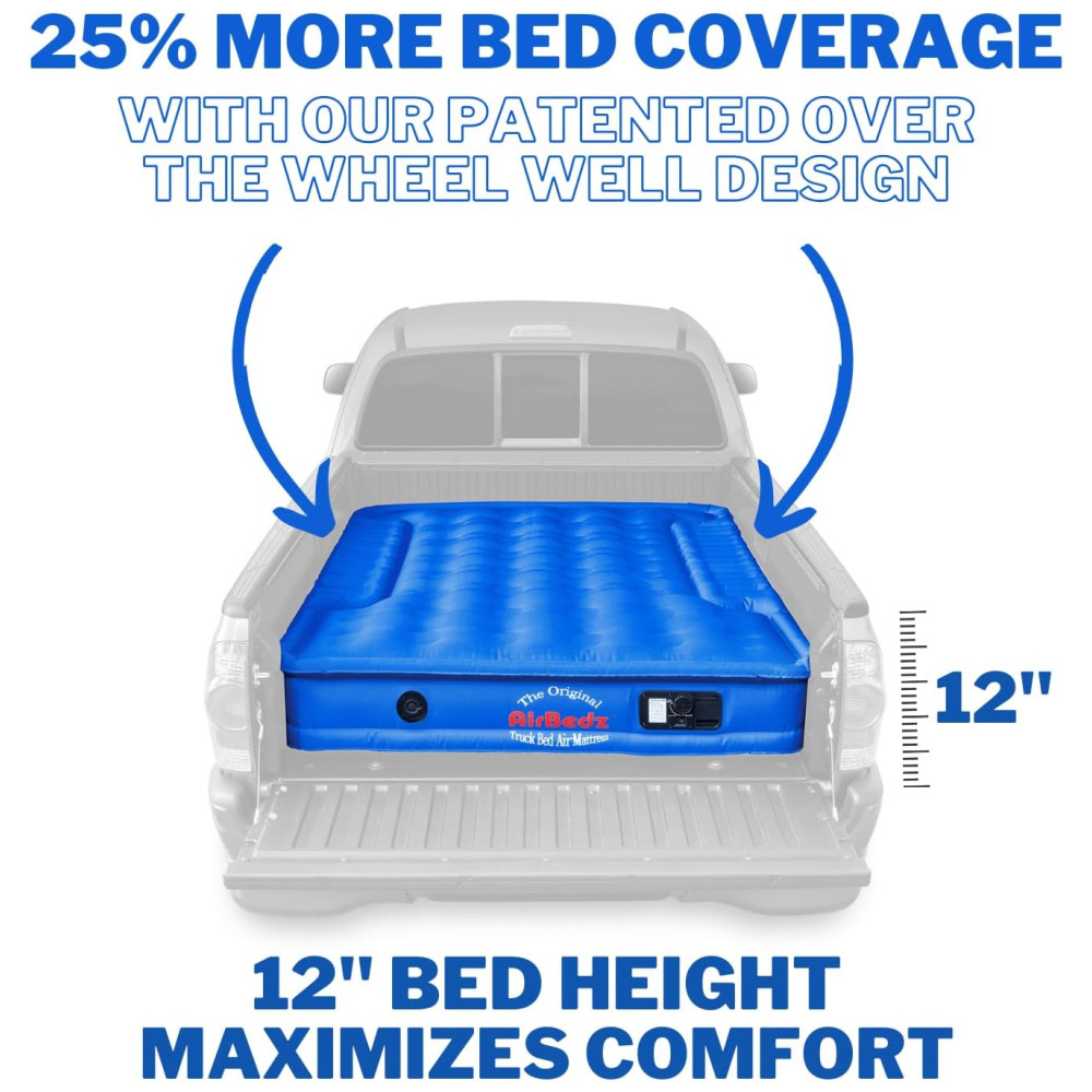 Colchão Inflável Casal com Bomba Embutida, Para até 450KG, Pittman Outdoors PPI30, Azul: Projetado para caber ao redor e sobre as cavidades das rodas de sua pick up, criando uma área de dormir que utiliza toda a caçamba do caminhão, proporcionando mais espaço e conforto para os entusiastas do ar livre.
