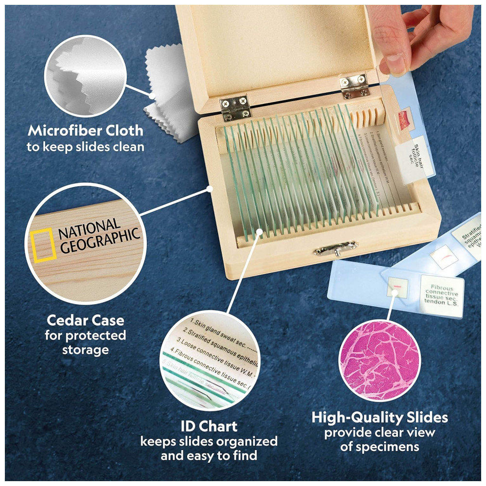 Conjunto de Amostras de Nível Profissional, 25 Lâminas de Microscópio Preparadas, National Geographic