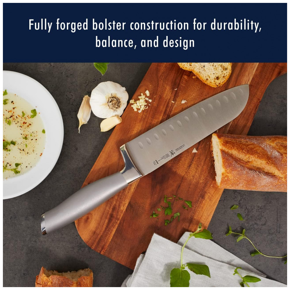 Conjunto de Facas com Afiador Embutido e Bloco de Bancada 13 Peças, HENCKELS 17500 000, Prateado: FABRICAÇÃO DE QUALIDADE Facas fabricadas em aço inoxidável de alta qualidade LEVE E FORTE O design leve e cheio de espiga proporciona máxima manobrabilidade CORTE PRECISO A lâmina profissional de ponta fina possui corte de precisão e é finamente afiada para nitidez duradoura CORTE SEM FADIGA A alça tradicional de rebite triplo oferece equilíbrio e é curvada para maior conforto LIMPEZA FÁCIL Pode ser lavada na máquina de lavar louça lavagem à mão recomendada