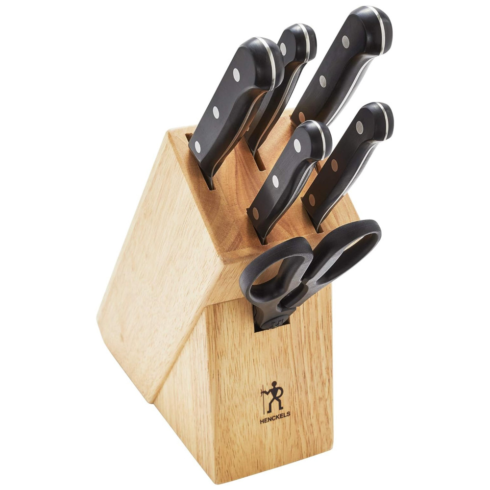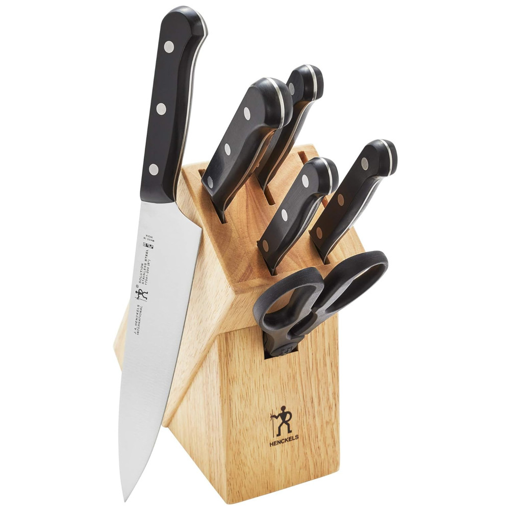 Conjunto de Facas em Aço Inoxidável com Bloco de Bancada, 7 Peças, HENCKELS 17553 407, Preto: A construção de lâmina de peça única e estampada com precisão proporciona durabilidade.