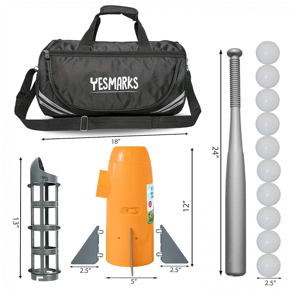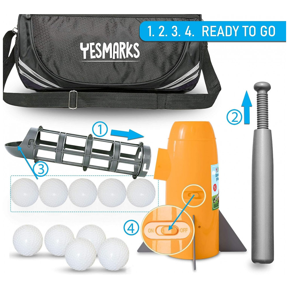 Conjunto de Golfe com Arremessador Automático para Crianças de 5 Anos ou Mais, YESMARKS, Laranja: EQUIPAMENTO COMPLETO DE TREINAMENTO DE BEISEBOL O conjunto inclui 1 máquina de arremesso automático em forma de foguete, 1 taco de beisebol de plástico leve, 10 bolas PP e 1 bolsa esportiva de luxo para zenamento e transporte.