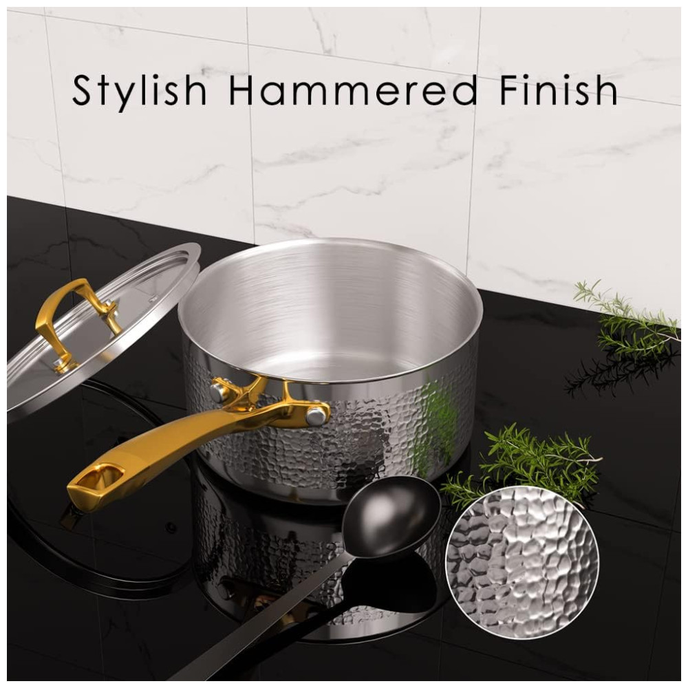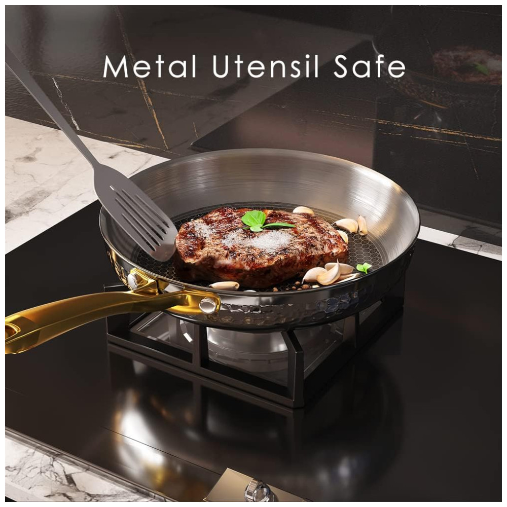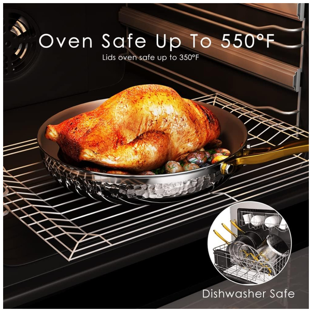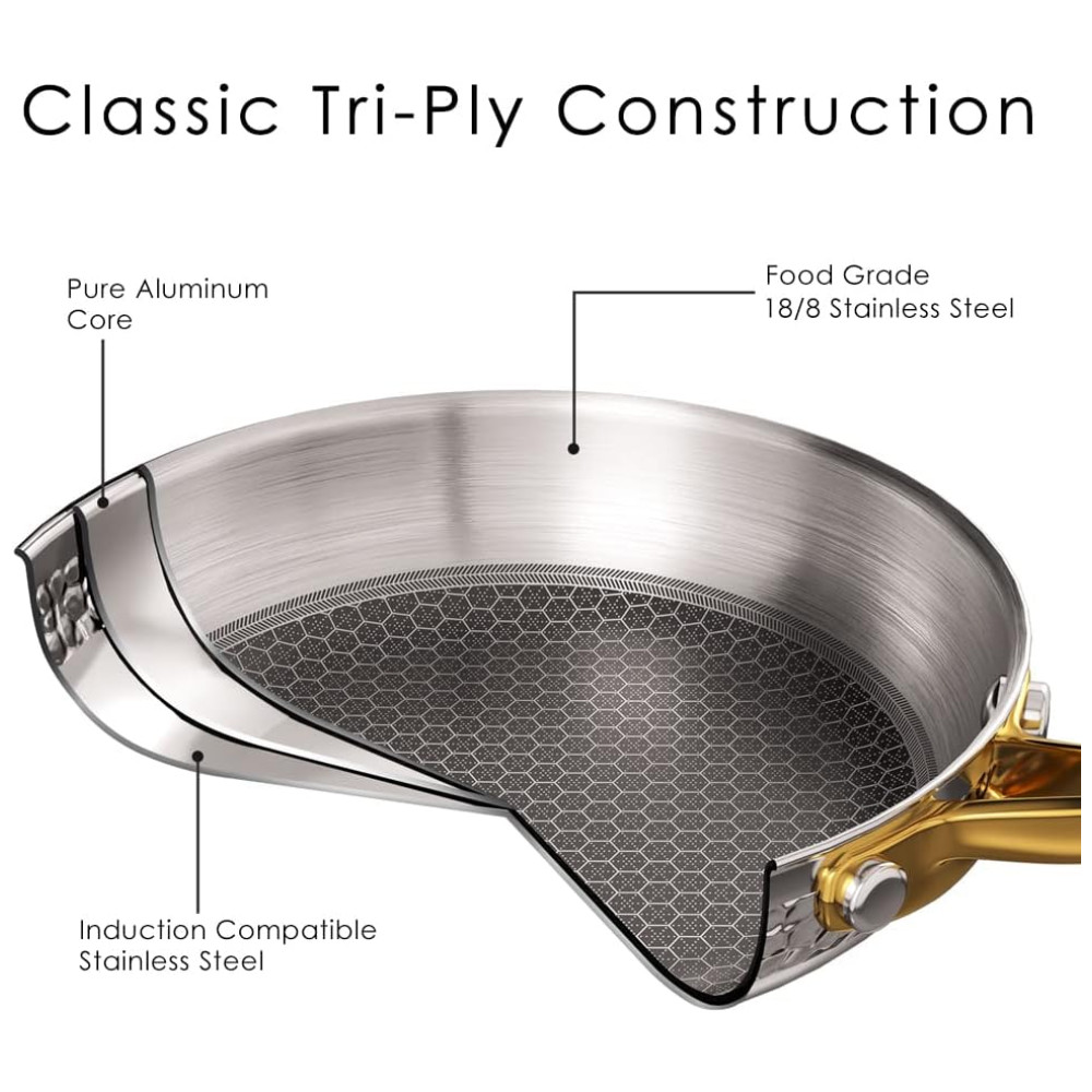 Conjunto de Panelas e Frigideiras 10 Peças em Aço Inoxidável Triplo para Indução e Não Tóxico, Homaz Life, Prata e Dourada: Este conjunto de panelas Homaz é um investimento em utensílios de cozinha de qualidade que durarão a vida toda.
