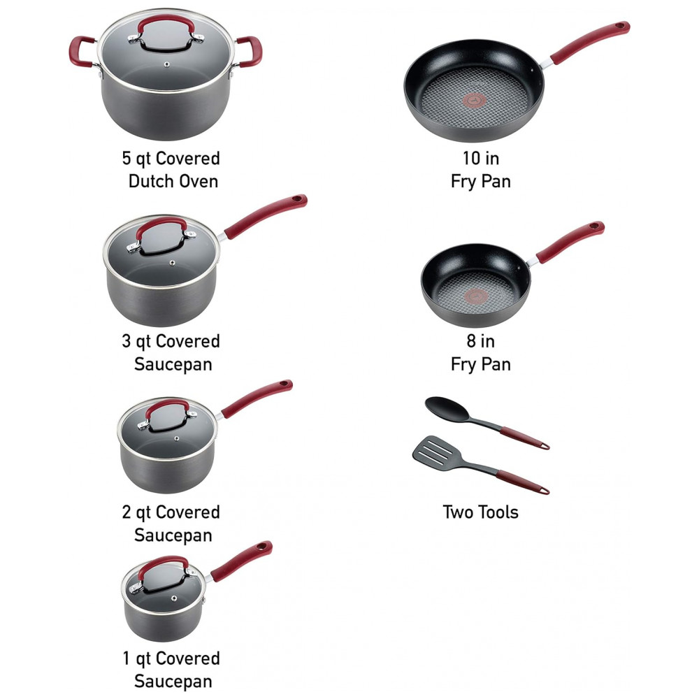 Conjunto de Panelas e Frigideiras Antiaderentes, 12 Peças, T FAL B004SC63, Vermelho
