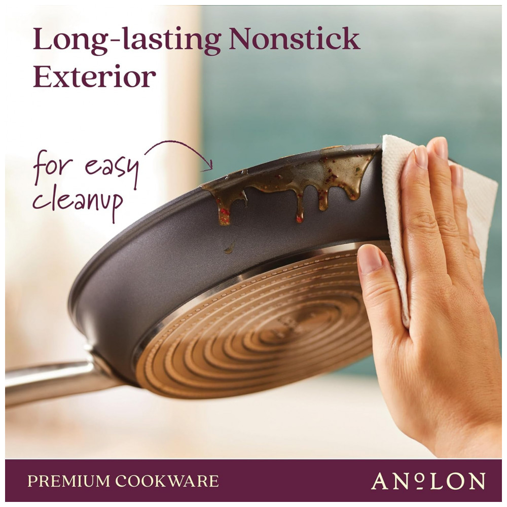 DURÁVEL PARA A VIDA As panelas e frigideiras Anolon Accolade combinam o desempenho de panelas forjadas de qualidade com um acabamento antiaderente de camada tripla incrivelmente du…