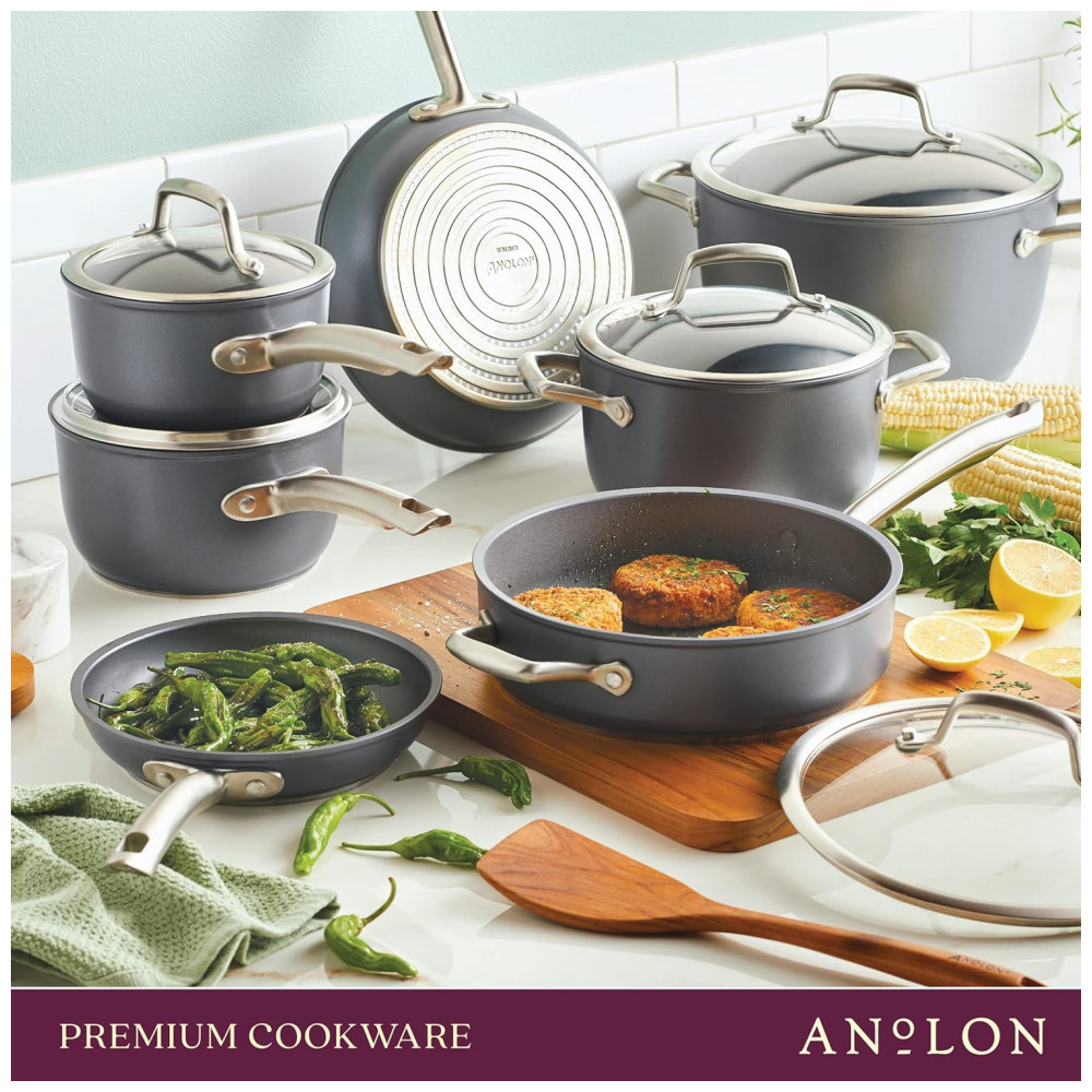 Conjunto de Panelas e Frigideiras Antiaderentes Anodizadas, 12 Peças, ANOLON 81133, Cinza