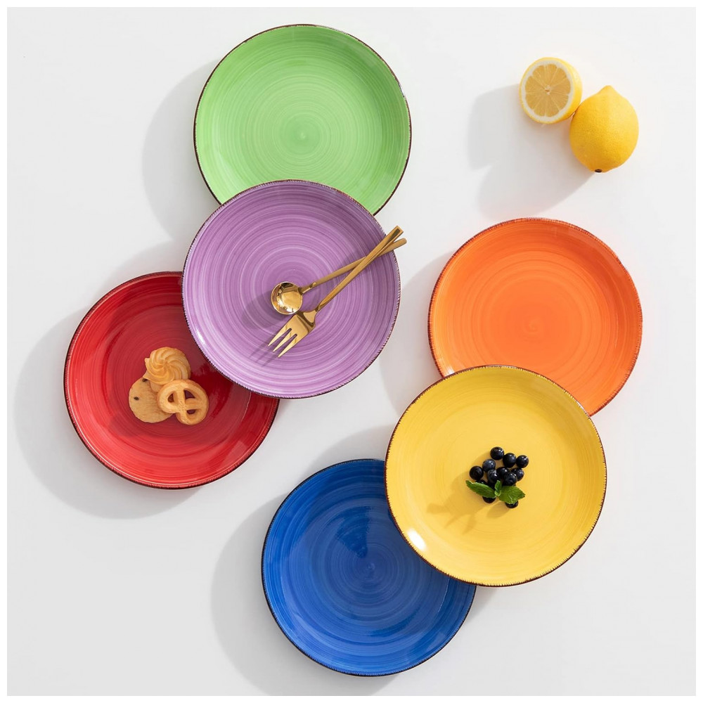 Conjunto de Pratos de Sobremesa 6 Un em Cerâmica, vancasso Bonita, Coloridos: Pratos de sobremesa Esta placa de salada tem 17 centímetros de diâmetro, que é um tamanho perfeito para sobremesa, lanches, salada, macarrão, macarrão, tiramisu, bolo de frutas, cheesecake, etc.