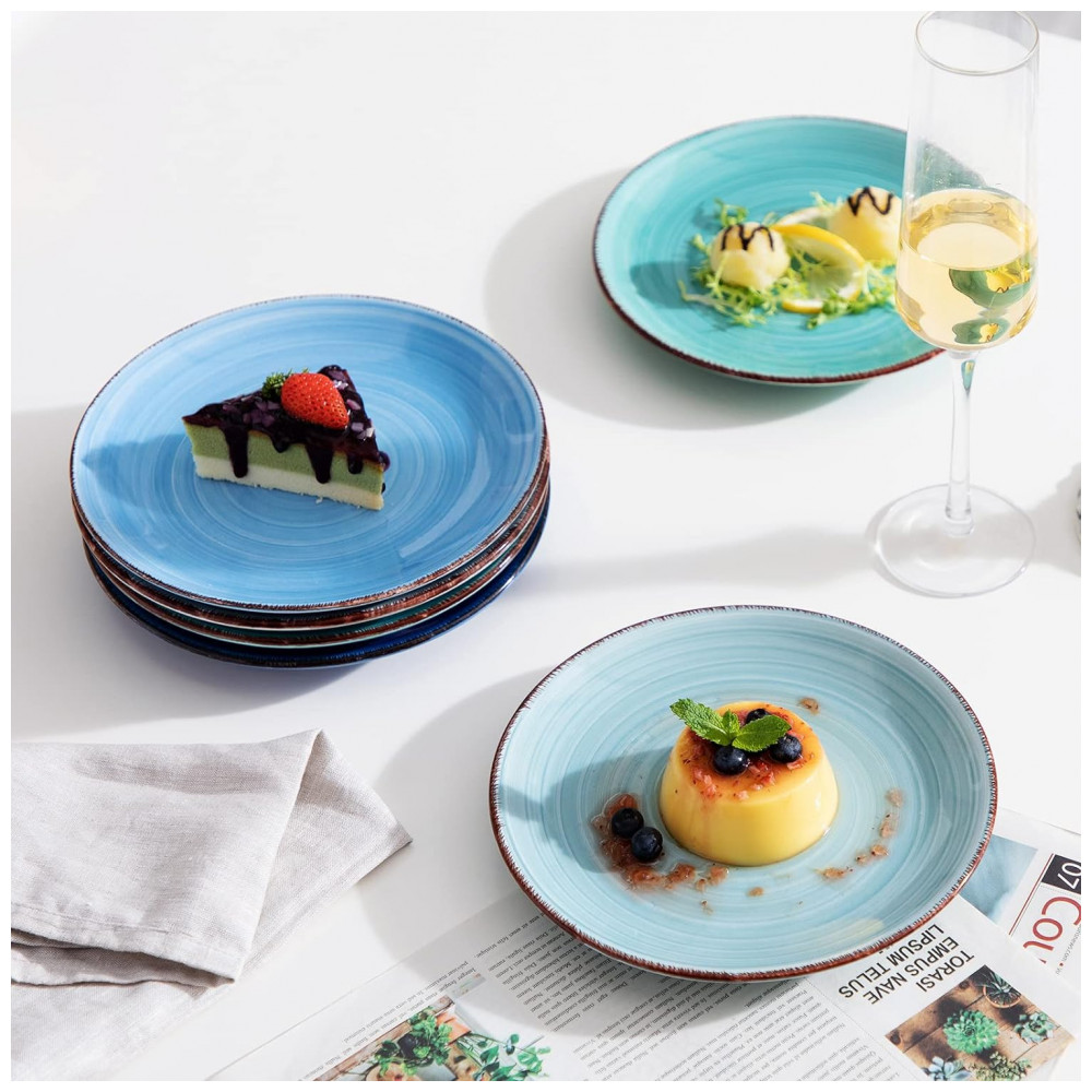 Conjunto de Pratos de Sobremesa 6 UN em Cores Frias, vancasso Bonita Blue: Pratos de sobremesa tem 17 centímetros de diâmetro, que é um tamanho perfeito para sobremesa, lanches, salada, macarrão, macarrão, tiramisu, bolo de frutas, cheesecake, etc.