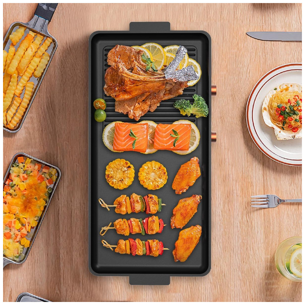 Grelhe enquanto mantém a comida aquecida, reduzindo a fumaça em 95 para um ambiente de jantar mais saudável.