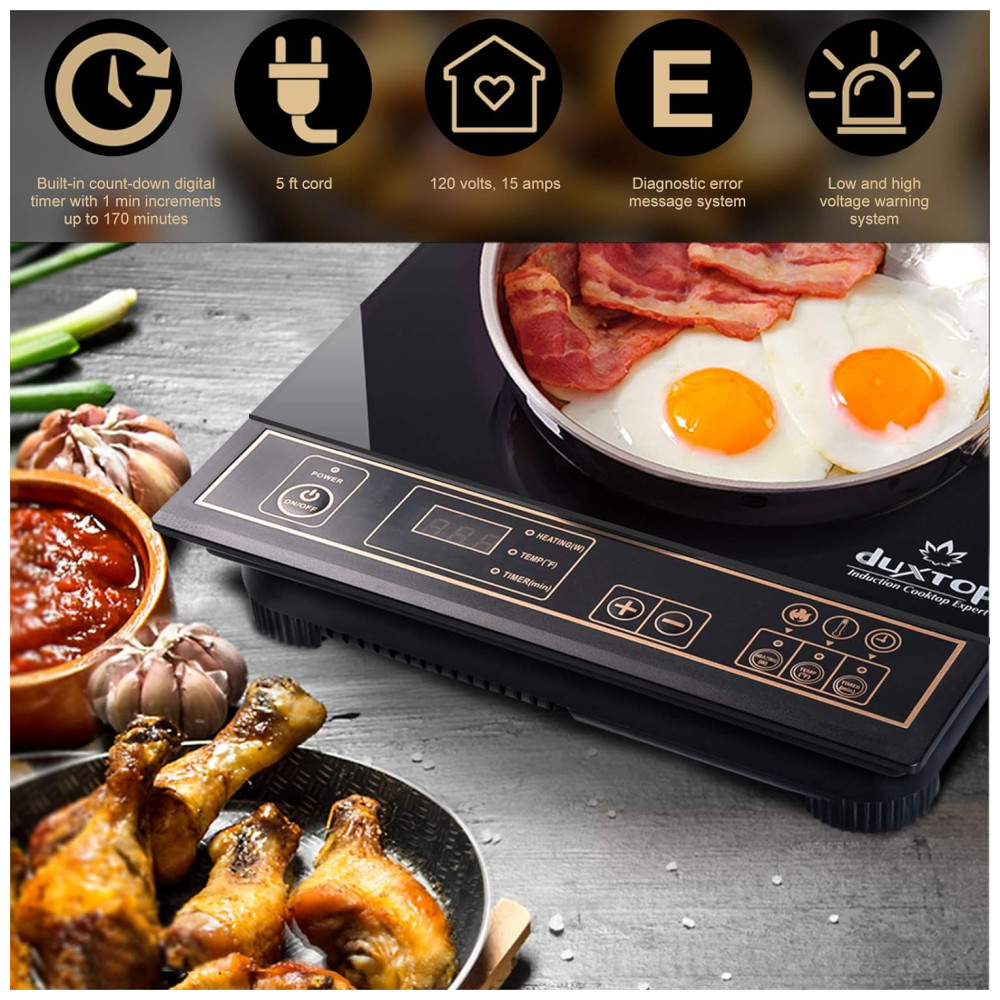 Cooktop Elétrico de Indução Portátil com Controle Digital, 110V 1800W, DUXTOP 8120MC, Preto: Conheça o Cooktop de Indução Portátil Duxtop 1800W para Bancada, Prata 8120MC BT 180G3 O cooktop de indução Duxtop usa tomada elétrica de 110V e 15 ampères padrão em todas as casas da América do Norte.