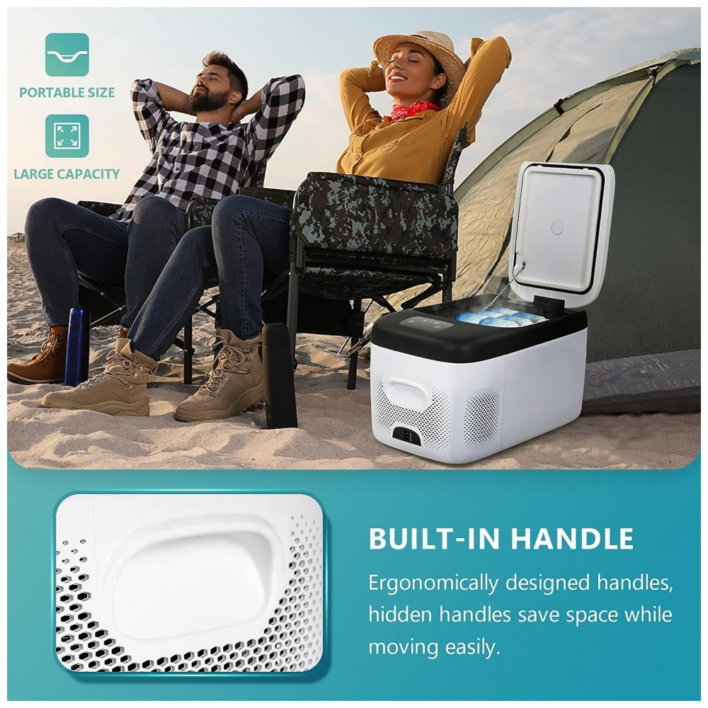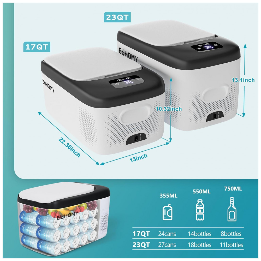 Cooler Elétrico Automotivo Portátil 23 Litros, EUHOMY, Branco: COMPACTO E PORTÁTIL O refrigerador automotivo é compacto e portátil, com grande capacidade de 23L, é fácil de usar em qualquer lugar.