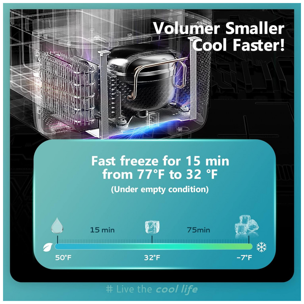 ALTA EFICIÊNCIA E BAIXO CONSUMO DE ENERGIA O freezer Euhomy de 12 volts adota tecnologia avançada de refrigeração 3D e está equipado com um poderoso compressor para resfriamento rápido.