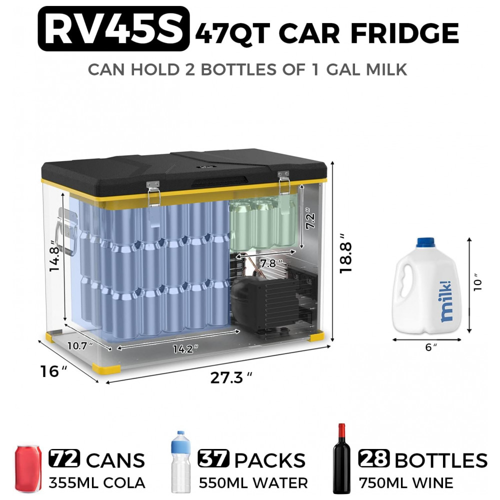 Geladeira e Congelador Portátil 43L para Carros, 12 24V DC 100 240V AC, SetPower RV45D PRO, Preto