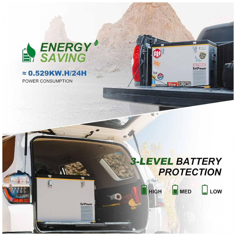 Grande capacidade e ótimo isolamento Camada isolada super espessa e junta de borracha conferem ao refrigerador automotivo SetPower RV45S um ótimo desempenho de resfriamento, mesmo…
