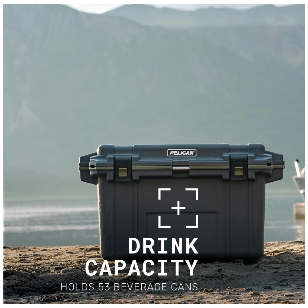 Cooler Térmico Portátil 70 Litros com Alça, Pelican, Cinza e Verde: VOLUME volume interno verdadeiro de 70 litros.