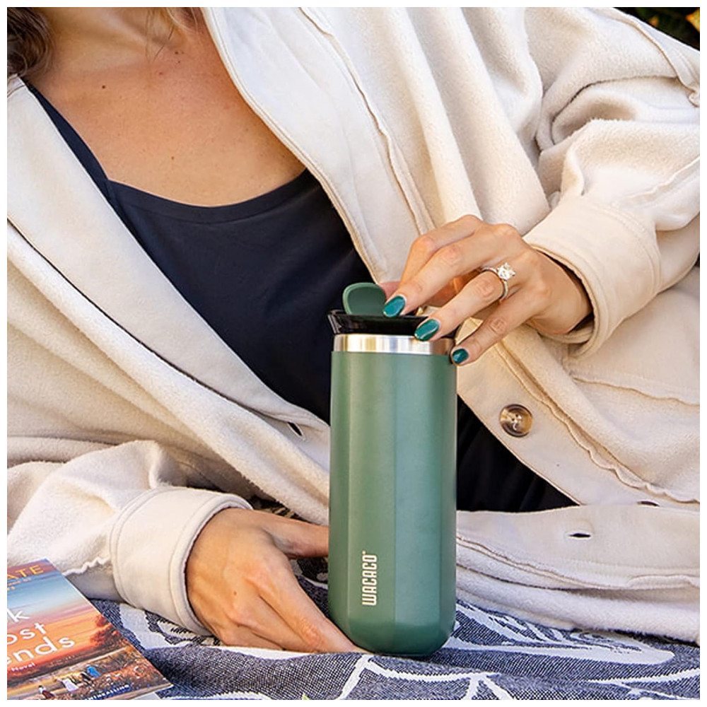 Copo para Café 435 mL Isolado a Vácuo Aço Inox Duplo com Tampa, WACACO Octaroma, Verde