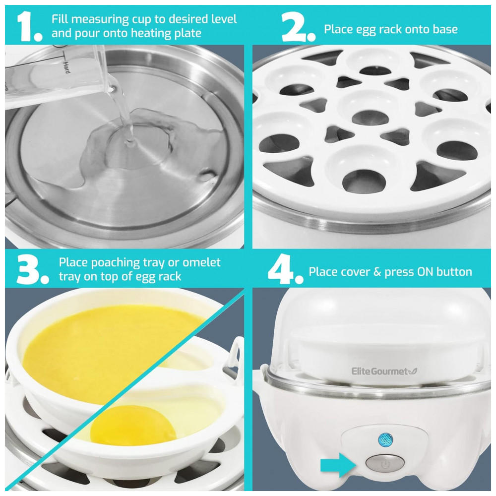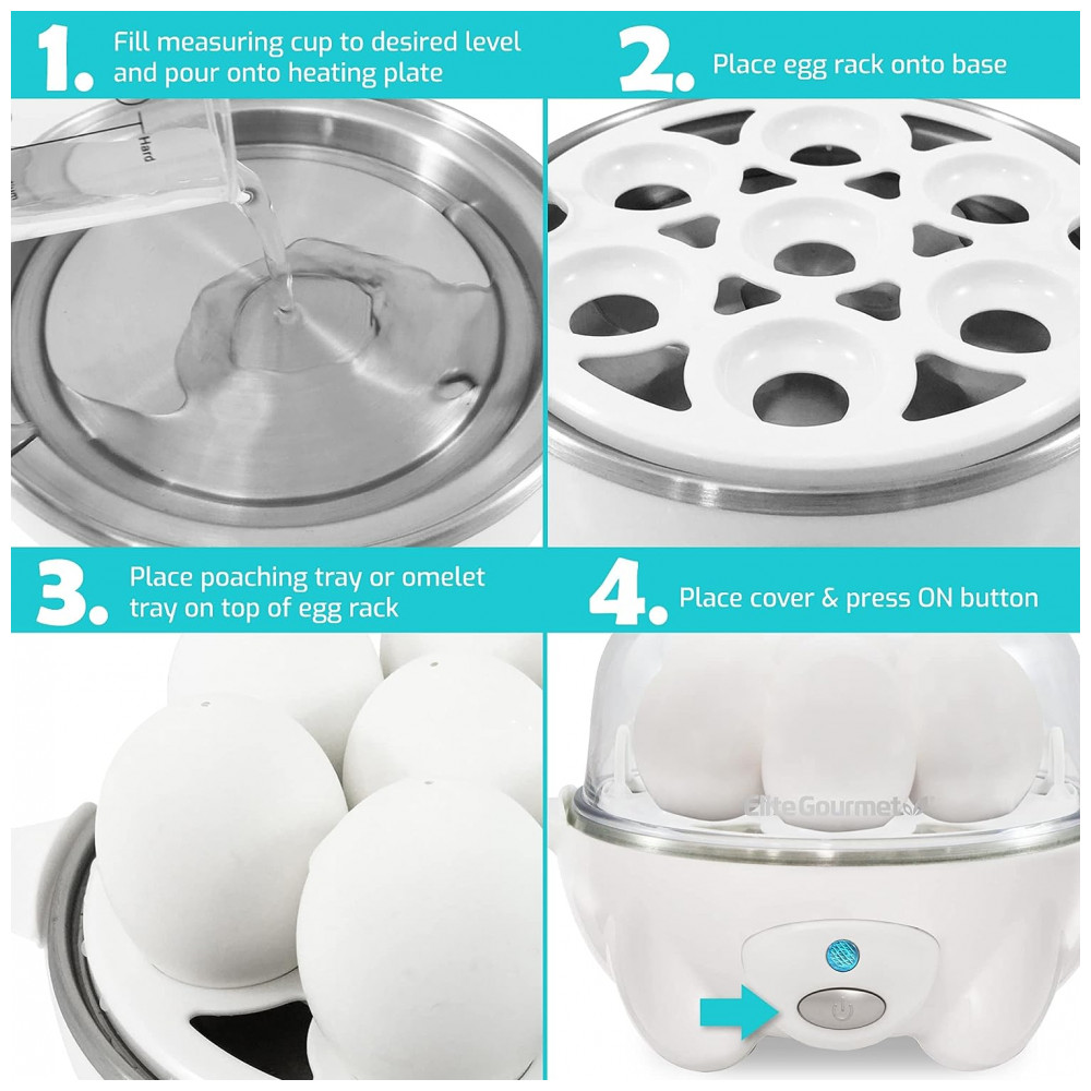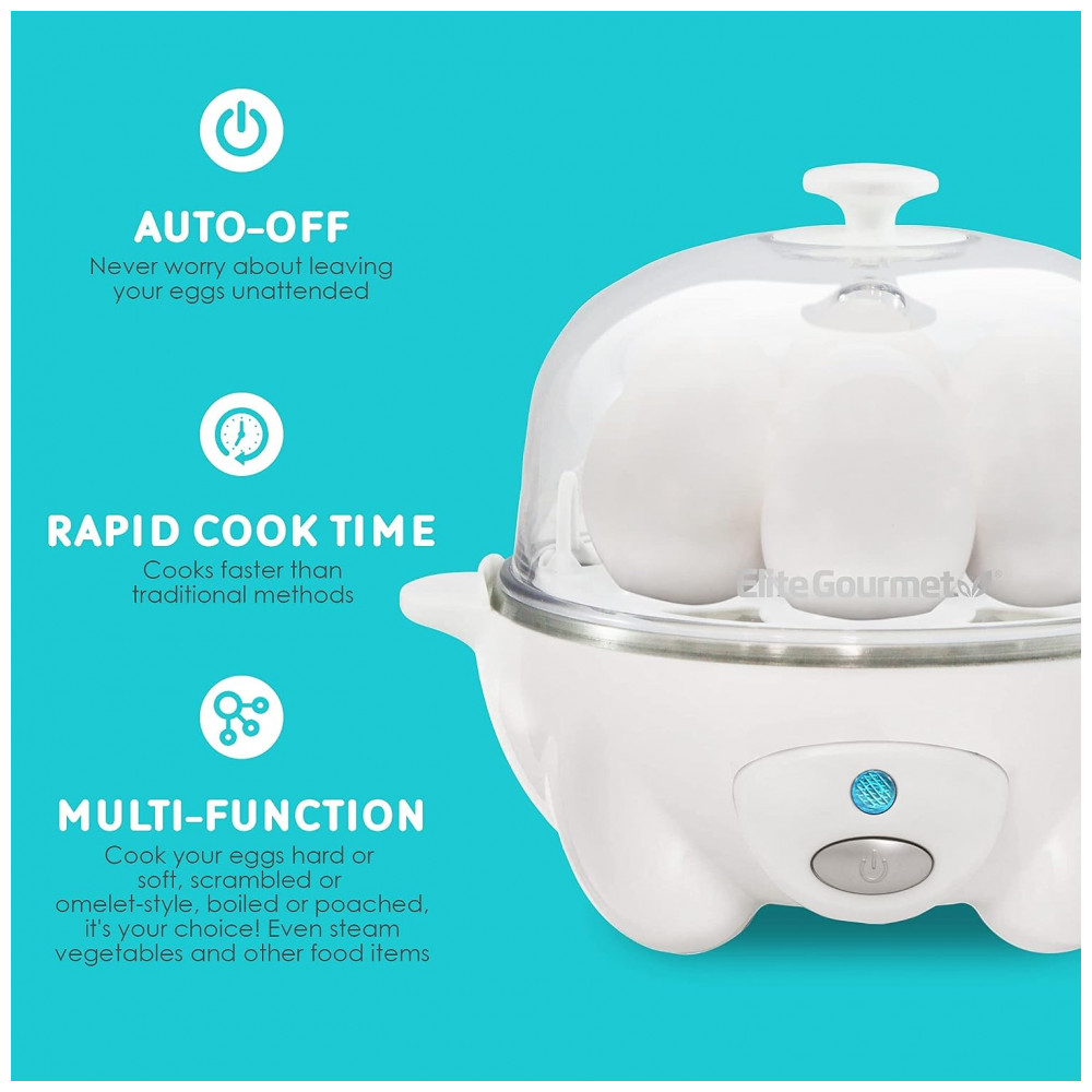 Cozedor de Ovos Elétrico, Capacidade 7, 110v, ELITE GOURMET EGC 007, Branco