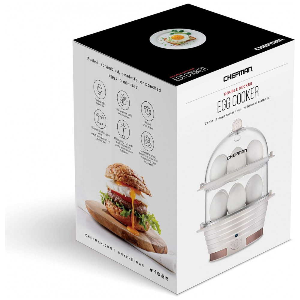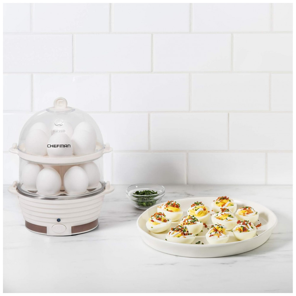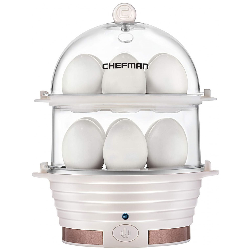 Cozedor de Ovos Elétrico com 2 Andares para até 12 Ovos, 360W, 110v, CHEFMAN Electric Egg Cooker Boiler,, Branco