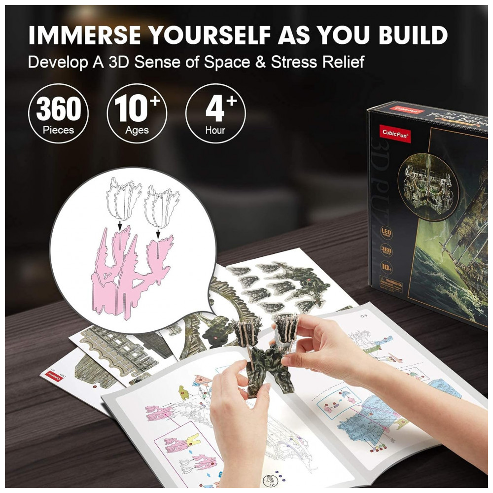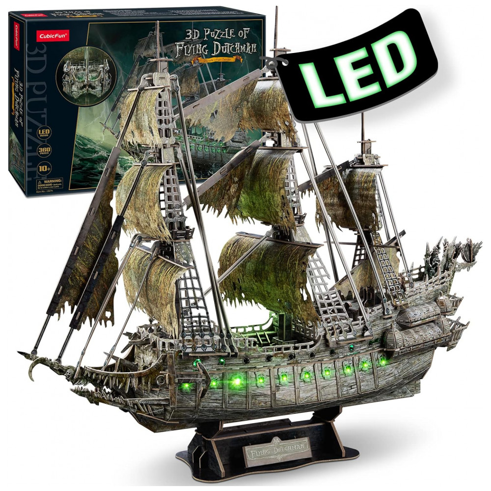 CubicFun Quebra Cabeças 3D Navio Fantasma Holândes Verdecom Led para Crianças e Adultos, 360 Peças: