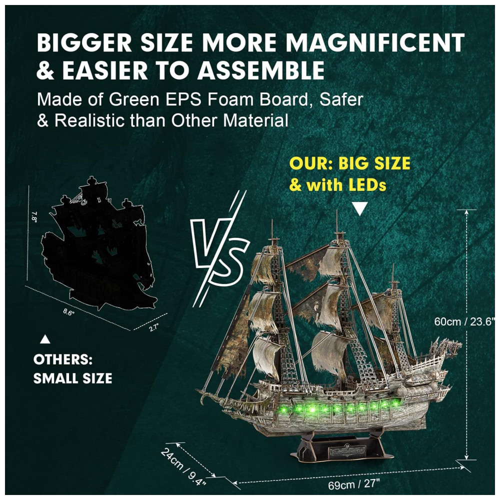 A madeira podre do casco com o LED verde, a proa do navio em forma de monstro e o misterioso deck de cocô da estátua darão vida ao seu quebra cabeça de navio 3d.