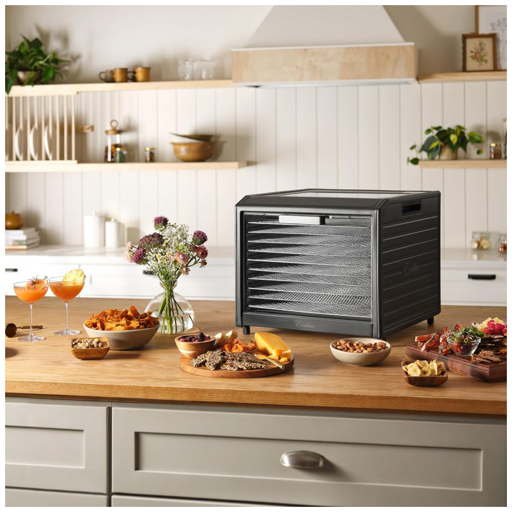 Desidratador de Alimentos com 10 Bandejas, Controle de Temperatura, Porta de Vidro para Visualização e Display LED, 800W, Excalibur, Cinza