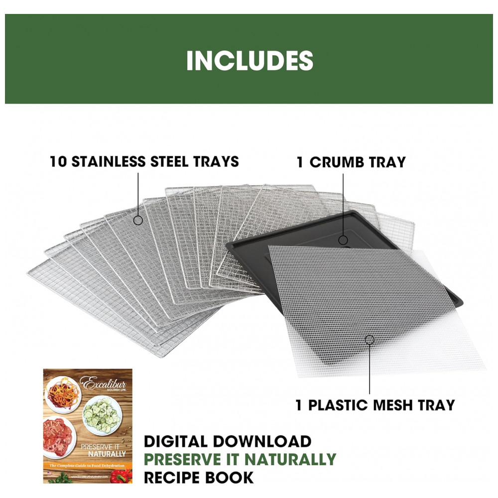 Com sua capacidade excepcional e tecnologias avançadas, o Desidratador elétrico de alimentos Excalibur Performance Series 10 bandejas é o companheiro perfeito para quem busca preservar sabores naturais e criar lanches nutritivos.