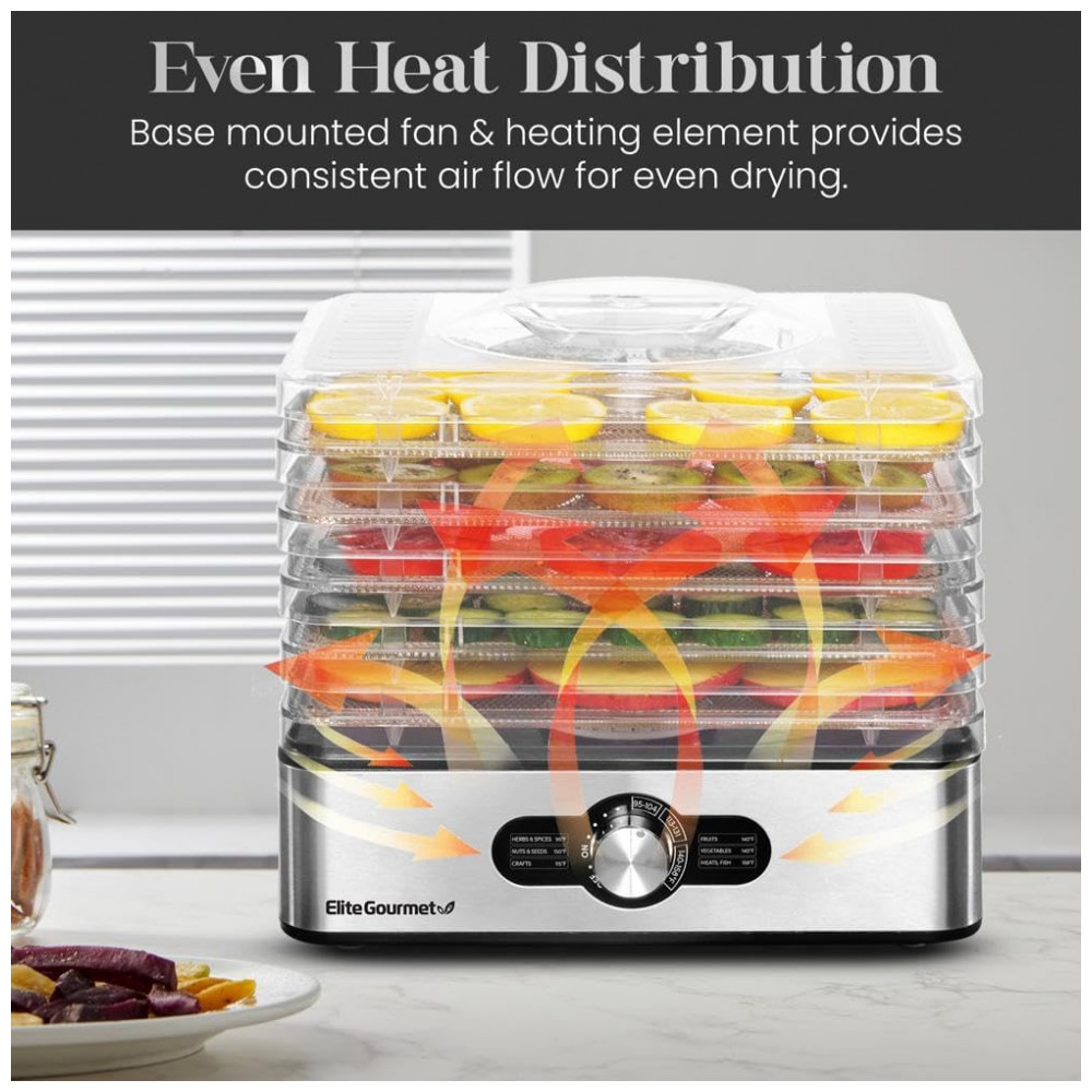 Desidratador de Alimentos com 5 Bandejas, Painel Digital de Controle, 110v, ELITE GOURMET EFD3321, Prateado