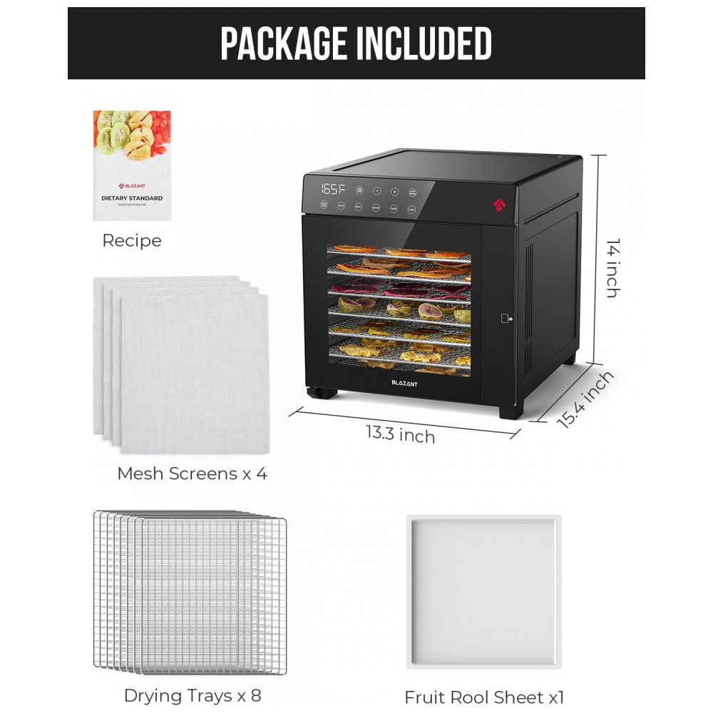 Desidratador de Alimentos com 8 Bandejas de Aço Inoxidável, Temperatura Ajustável e Temporizador de 48H, 600W, BLAZANT, Preto
