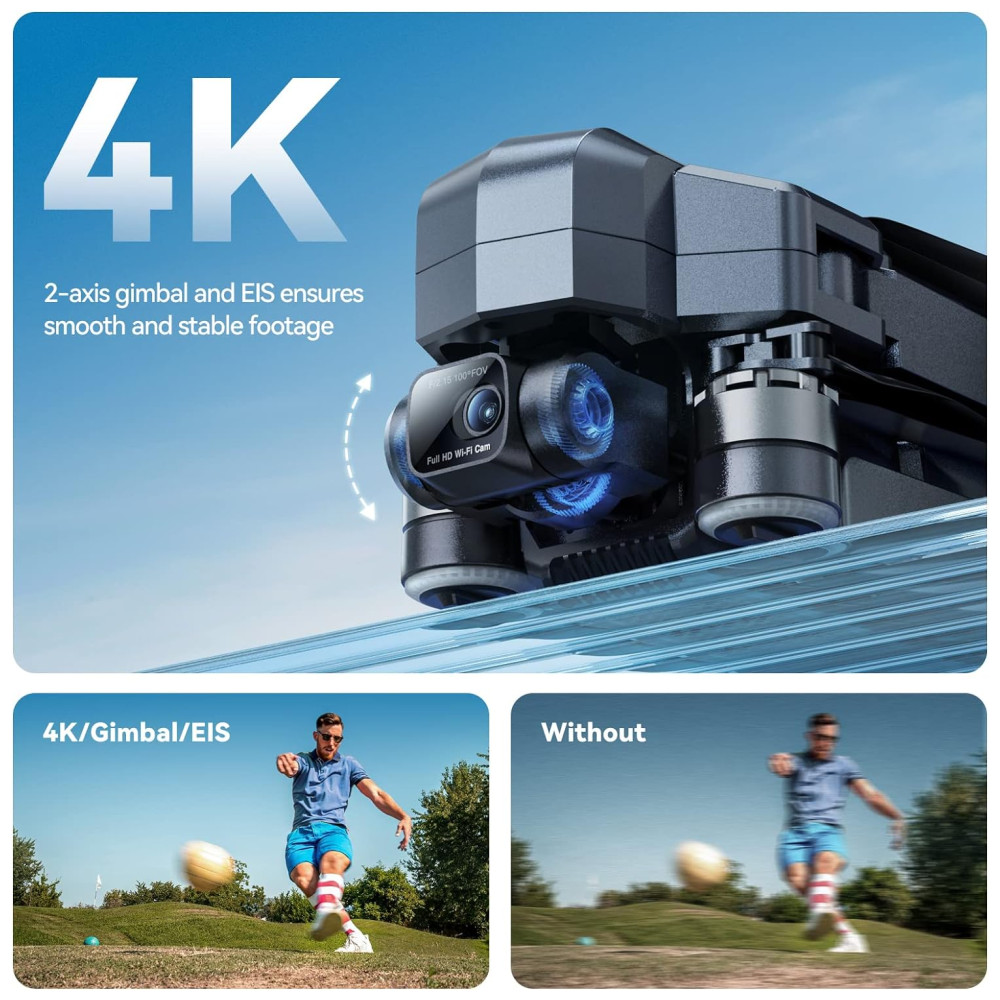 Câmera 4K com Gimbal e EIS a câmera 4K possui estabilização de gimbal de 2 eixos e também carrega a tecnologia de Estabilização Elétrica de Imagem dentro, para que as fotos sejam tiradas de forma estável em 4K Gravação de vídeos em 4K, 30fps a ajuda da função de zoom fornece mais detalhes.