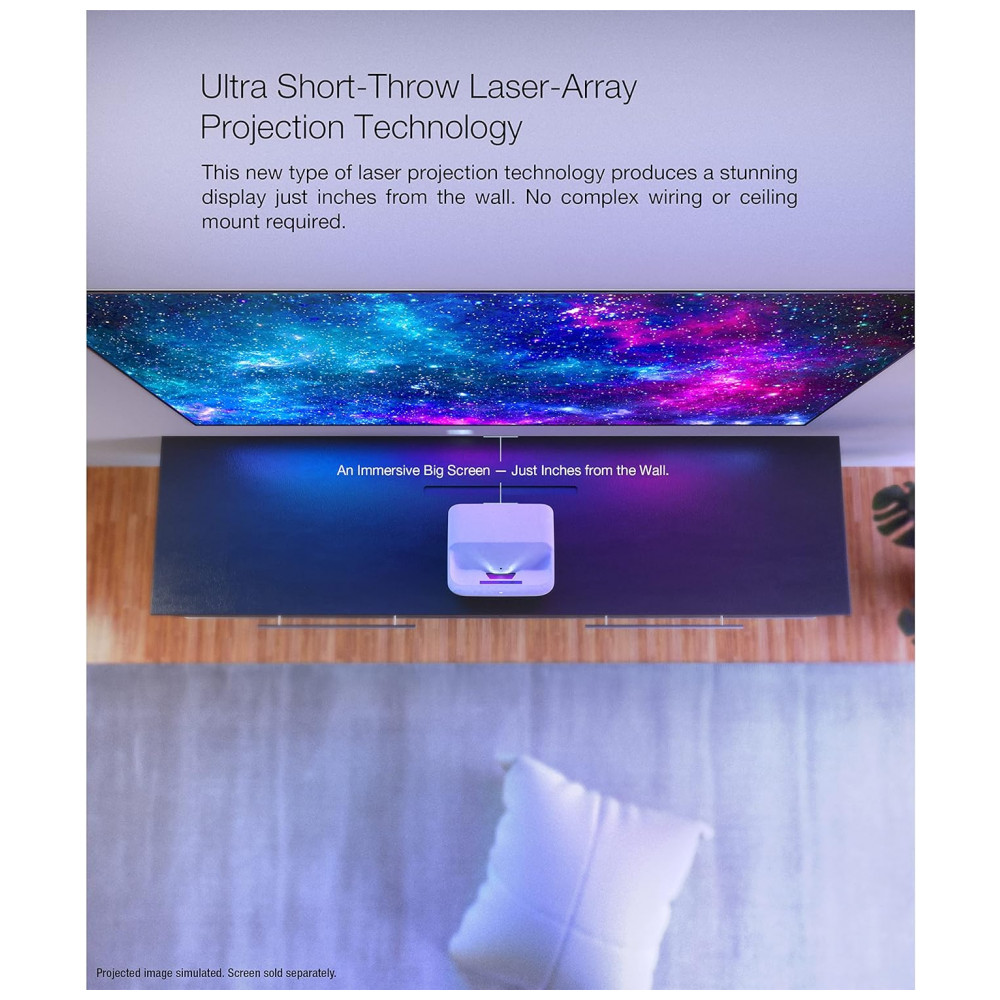Tecnologia de matriz de laser de alcance ultra curto A tecnologia exclusiva de diodo laser de matriz múltipla produz um nível excepcional de brilho enquanto aumenta significativamente a densidade de preto.