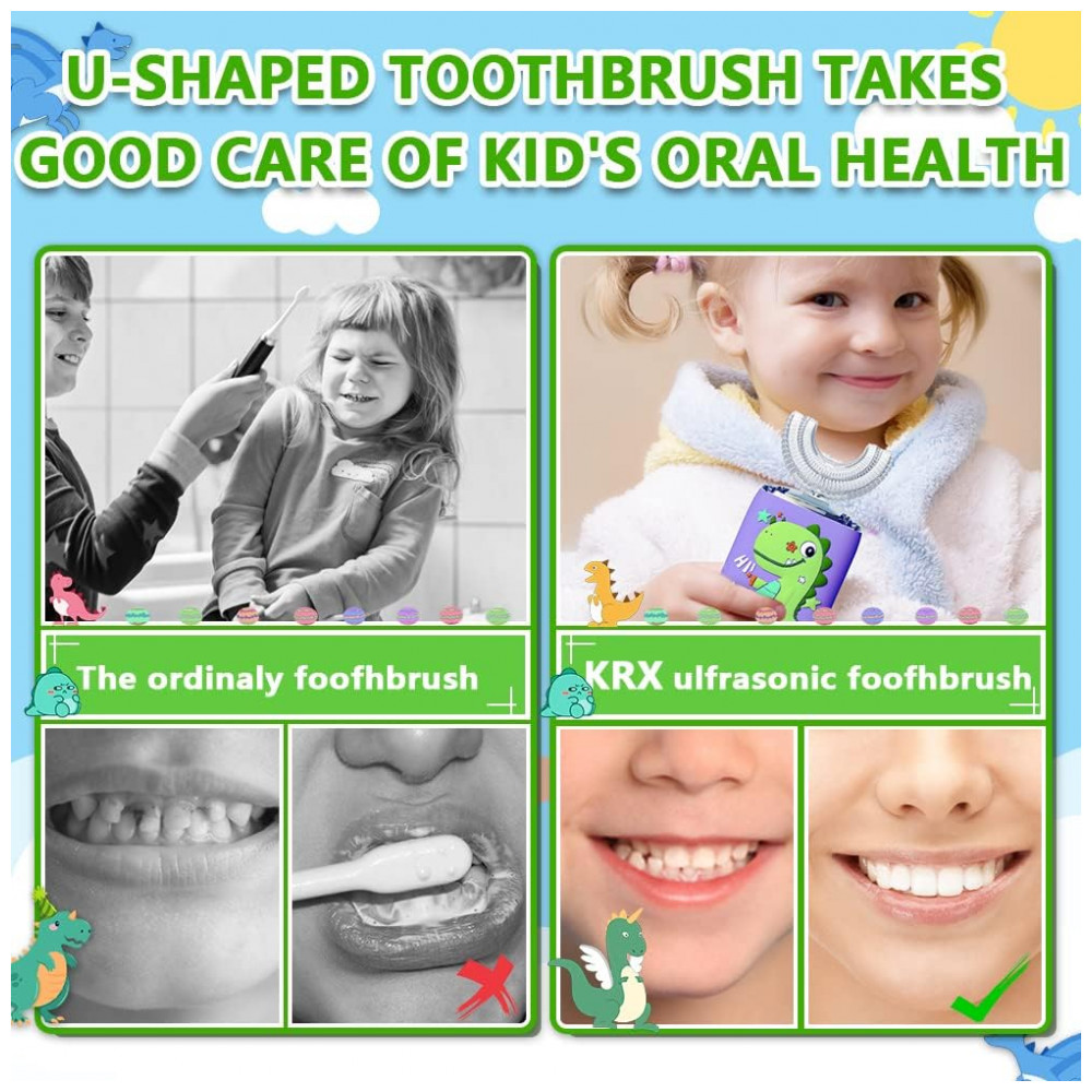 Escova de Dentes Ultrassônica Infantil Automática para Crianças de 2 a 6 anos, KRX, Violeta: Torna a escovação divertida O design bonito e colorido com o tema de dinossauros é perfeitamente projetado para tornar a escovação fácil e divertida para pequenos escovadores de 2 a 6 anos.