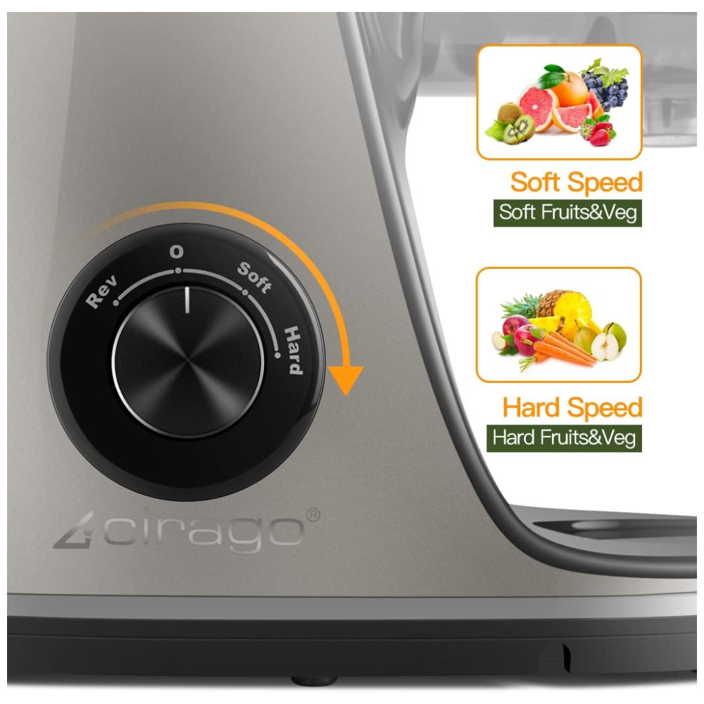 Espremedor de Sucos, 2 Velocidades, 150W, 110v, CIRAGO, Cinza: Maior preservação de nutrientes O espremedor CIRAGO Slow Masticating 80RPM pode não apenas preservar o máximo de nutrientes de frutas e vegetais, mas também reduzir a taxa de oxidação.