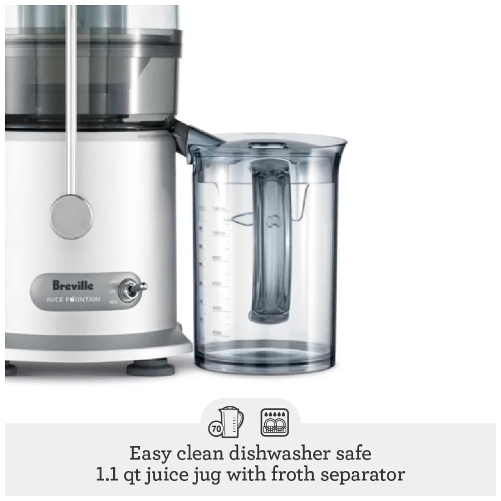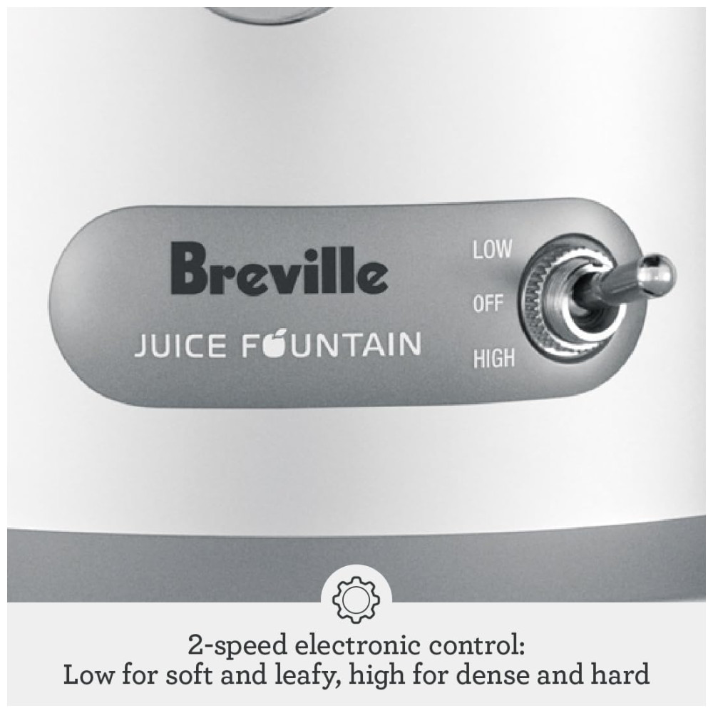 O Breville Juice Fountain Plus é a maneira perfeita de entrar no mundo dos sucos Este espremedor centrífugo possui uma rampa de frutas extra larga de 3 polegadas, velocidades dupla…