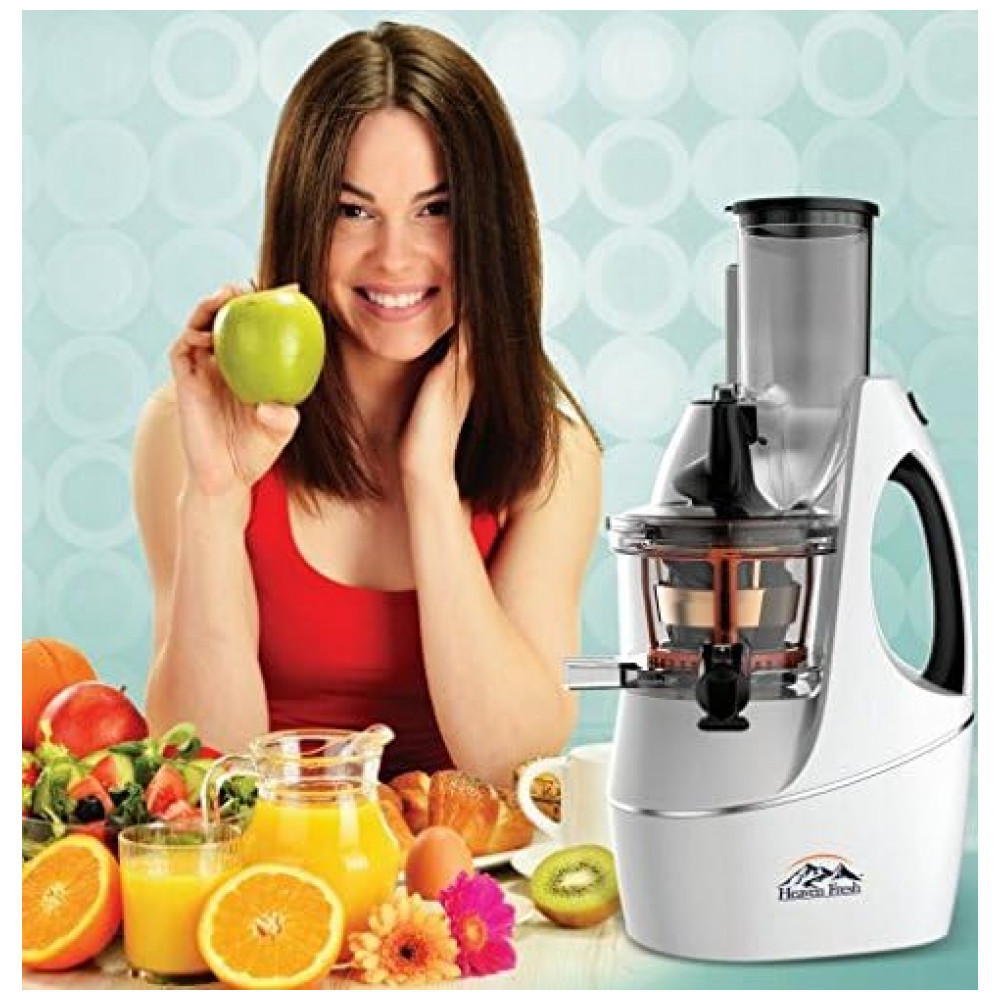 JUICE BENEFITS Easily intake your daily dose of fruits and vegetables Promotes Digestion Vitamins, Minerals, Antioxidants Strengthen Immune System Reduce Risk of Dehydration And Much More Heaven Fresh Masticating Juicer Cold press technology to prevent heat buildup and oxidization Up to 30 more Juice than a conventional high speed juicer Drip free cap makes it easy to combine juices or start and stop Frozen fruit attatchment makes sorbet with ease Includes a pusher to safely get the most out of your fruits and vegetables Ultra quiet operation with noise level between 40 50 dB Comes with brush for easy cleaning Slow Masticating Cold Press Juicer A Masticating juicer goes by many names such as Cold Press juicers and Slow juicers.