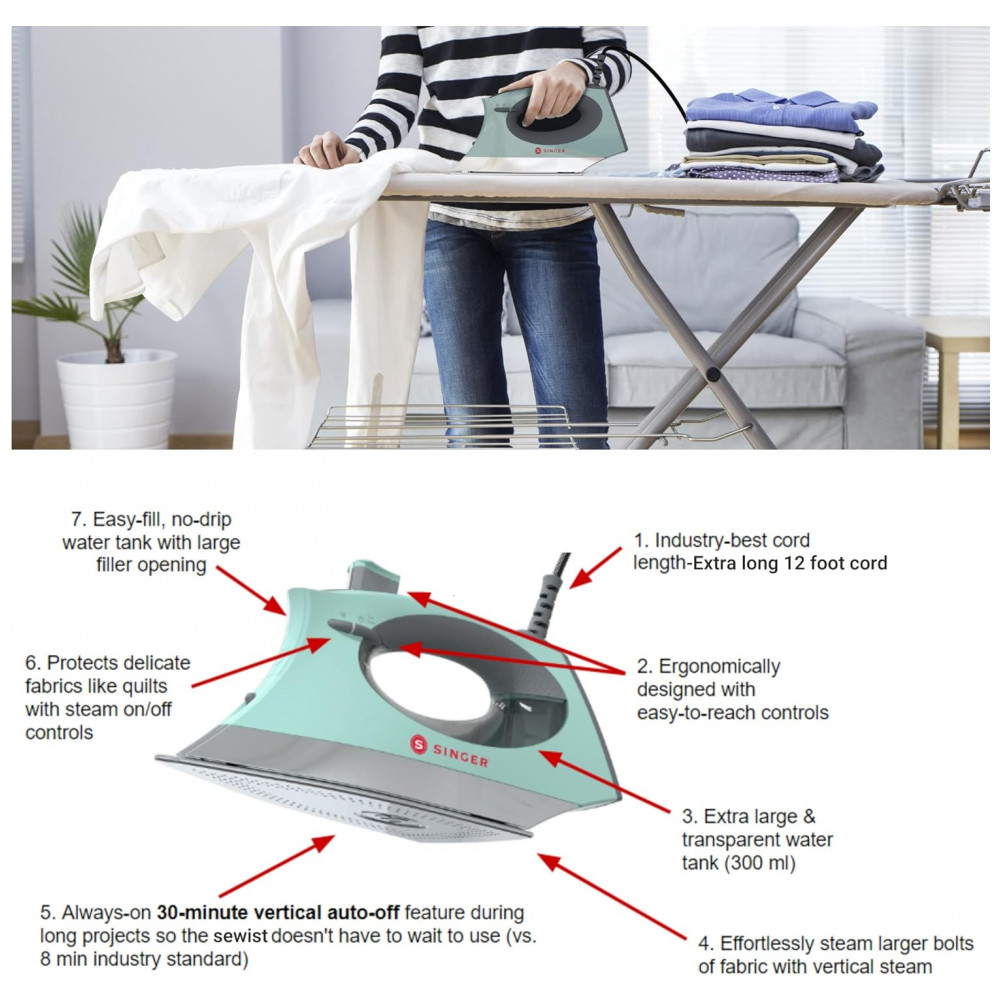 Ferro de Passar a Vapor, com Desligamento Automático, 1750W, 110v, SINGER SteamCraft, Verde: