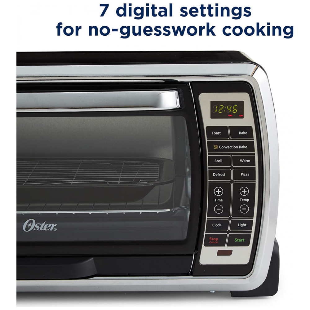 Forno de convecção, cabe até 6 fatias de pão para um cozimento mais rápido e uniforme. Este grande forno de bancada digital Oster pode caber uma panela com a medida de de altura, d…