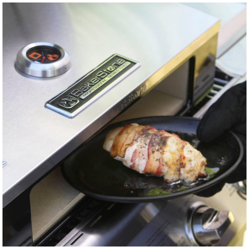 O forno BakerStone Professional Series se encaixa na maioria das churrasqueiras a gás de 3 queimadores e maiores e na maioria das churrasqueiras a carvão de tamanho normal.