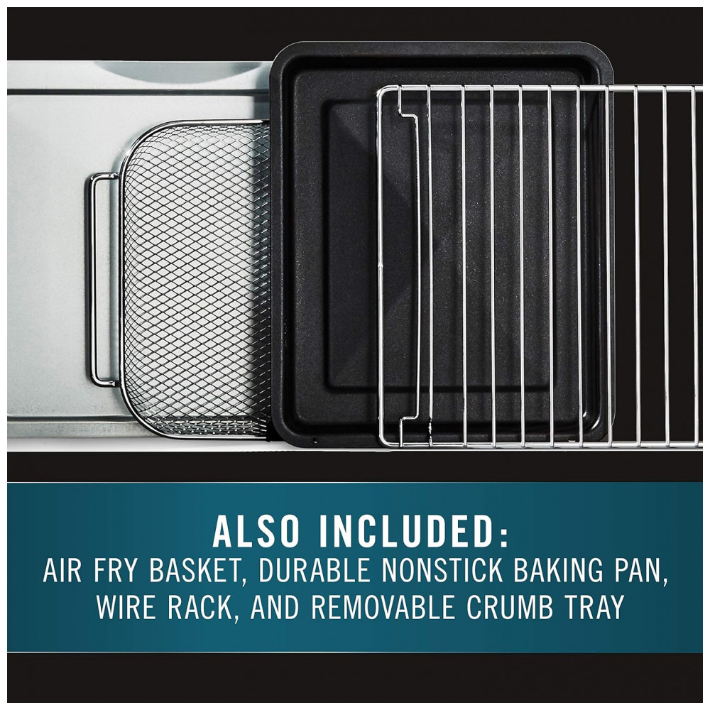 Forno Elétrico de Bancada com Convecção e Tela LCD 1400W, Aço Inoxidável, 110v, CALPHALON 2109246, Cinza escuro: 11 funções de cozimento de precisão, incluindo fritar, assar, torrar, grelhar, assar, bagel, desidratar, pizza, reaquecer, manter aquecido e descongelar A Tecnologia de Calor de Quartzo fornece 40 mais calor uniforme para resultados de cozimento superiores e pré aquece mais rápido em comparação com elementos de aquecimento de tubo convencional A convecção turba aumenta a circulação do fluxo de ar para um cozimento mais rápido e uniforme em comparação com os fornos convencionais A grande capacidade cabe até uma pizza de dimensões externas 47 x 40 x dimensões interiores 31 x 33 x A luz embutida permite que você acompanhe o progresso do cozimento interior fácil de limpar e bandeja de migalhas removível torna a limpeza rápida e eficiente A tela LCD de alto contraste oferece controle excepcional de todos os recursos Inclui cesta de fritura de ar, assadeira antiaderente durável, rack de arame e bandeja removível para migalhas A construção durável em aço inoxidável escuro oferece um acréscimo moderno a qualquer cozinha