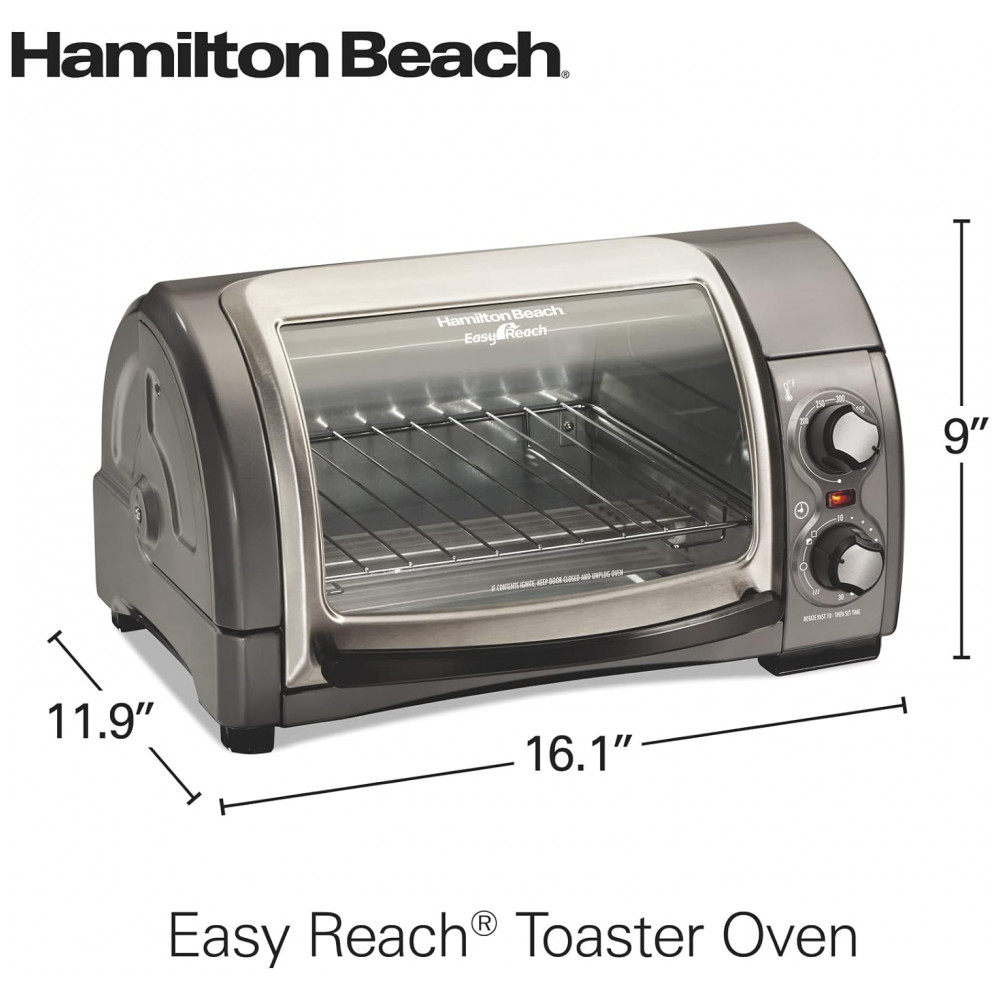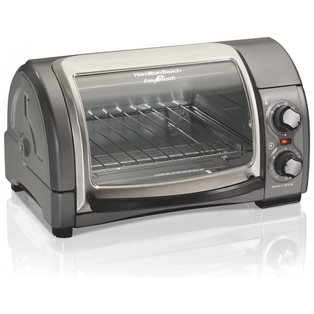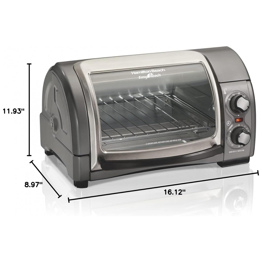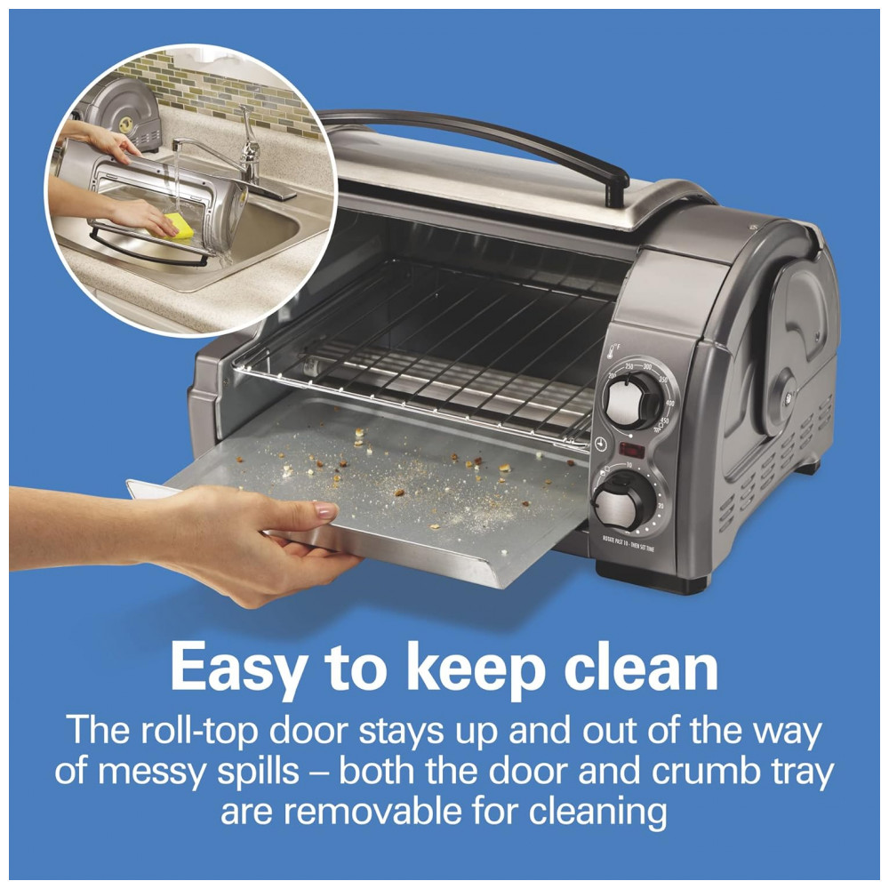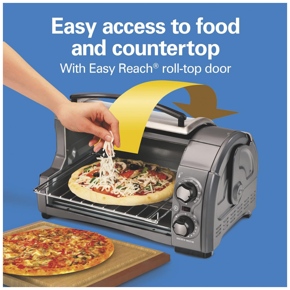 Forno Elétrico de Bancada com Temporizador, 1200W, Aço, 110v, HAMILTON BEACH 31344D, Cinza: Você não encontrará um design como o forno torradeira Easy Reach da Hamilton Beach com porta de enrolar em nenhum outro lugar.