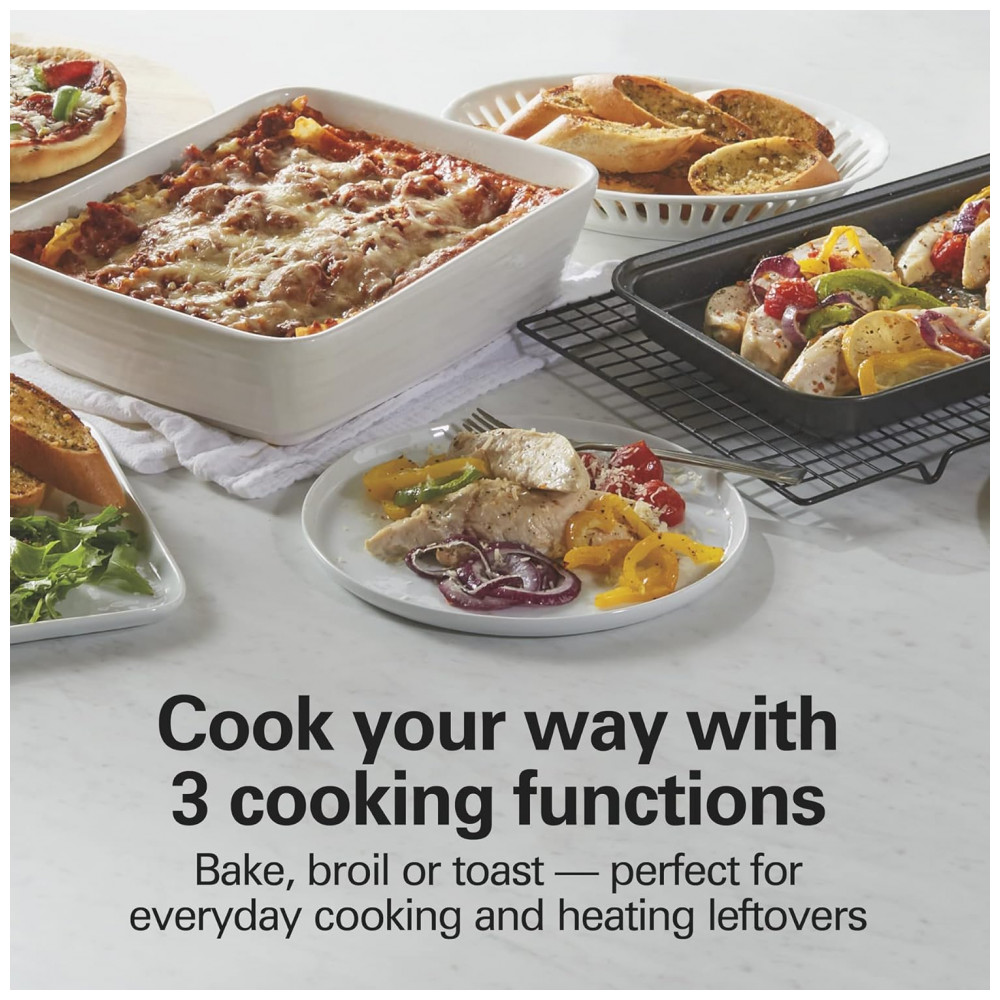 Você não encontrará um design como o forno torradeira Easy Reach da Hamilton Beach com porta de enrolar em nenhum outro lugar. A sua grande e única abertura torna os alimentos fáce…