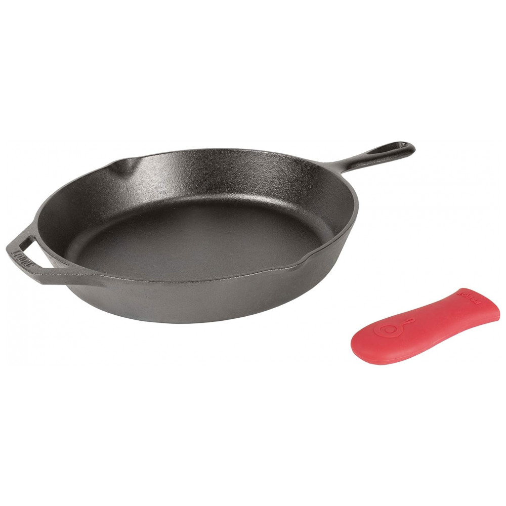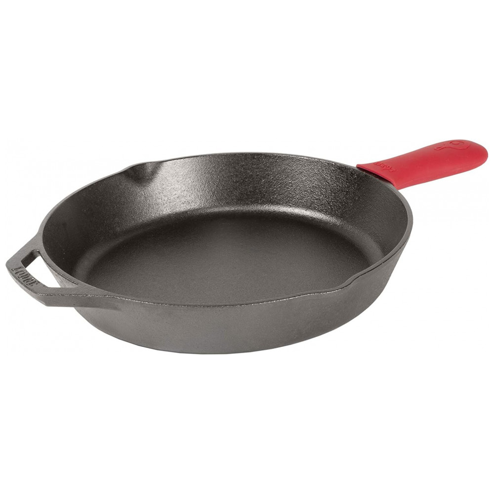 Frigideira de Ferro Fundido 4L Pré Temperada, com Alça de Silicone, LODGE L10SK3ASHH41B, Preto: Frigideira pré temperada de ferro fundido de com suporte para alça Alça auxiliar para melhor controle Retenção de calor incomparável e até aquecimento Pré temperado com óleo vegetal 100 natural Use para selar, refogar, assar, grelhar, refogar, fritar ou grelhar Use no forno, no fogão, na grelha ou sobre uma fogueira Ótimo para cooktops de indução