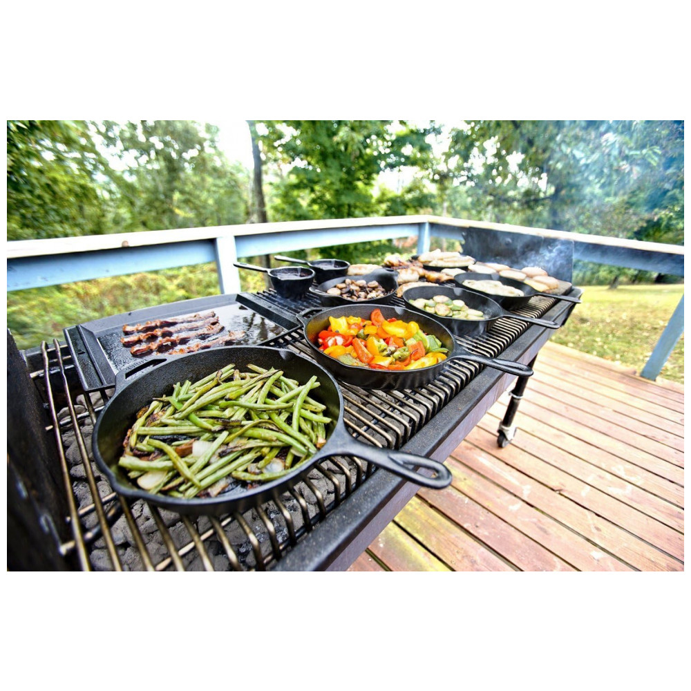 Frigideira pré temperada de ferro fundido de com suporte para alça Alça auxiliar para melhor controle Retenção de calor incomparável e até aquecimento Pré temperado com óleo vegeta…