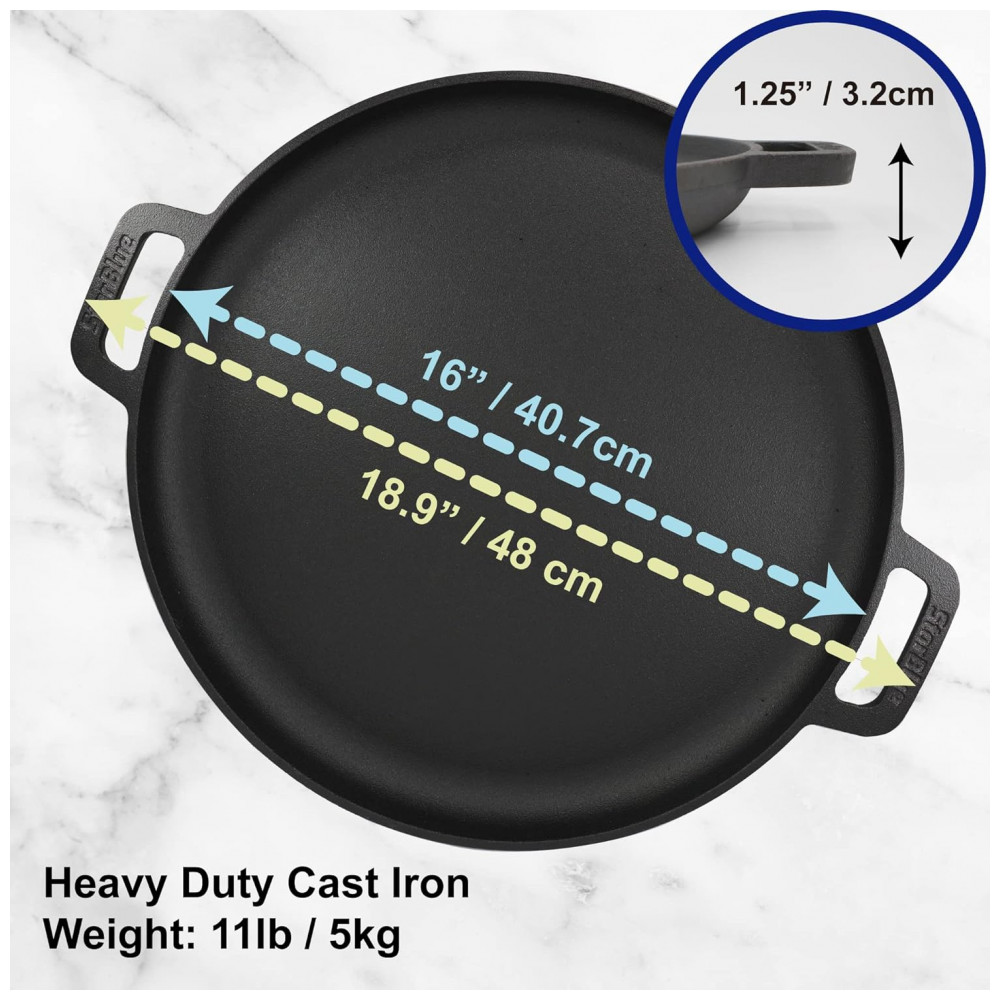 Frigideira de Ferro Fundido para Pizza com Alças de Silicone, STARBLUE SB GV 400, Preto: PANELA ANTI ADERENTE DE QUALIDADE PREMIUM Empregamos ferro fundido de alta qualidade e alças de silicone de primeira qualidade que garantirão a melhor experiência de fabricação de pizza de todos os tempos.