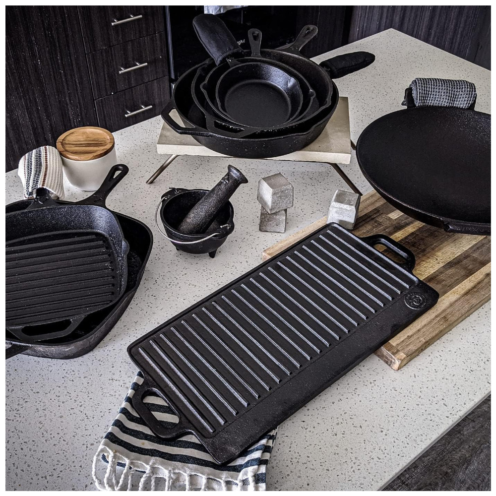O ferro fundido tem retenção de calor superior para cozinhar uniformemente, selar com qualidade de restaurante e vem pré temperado para teflon como superfície de cozimento antiader…