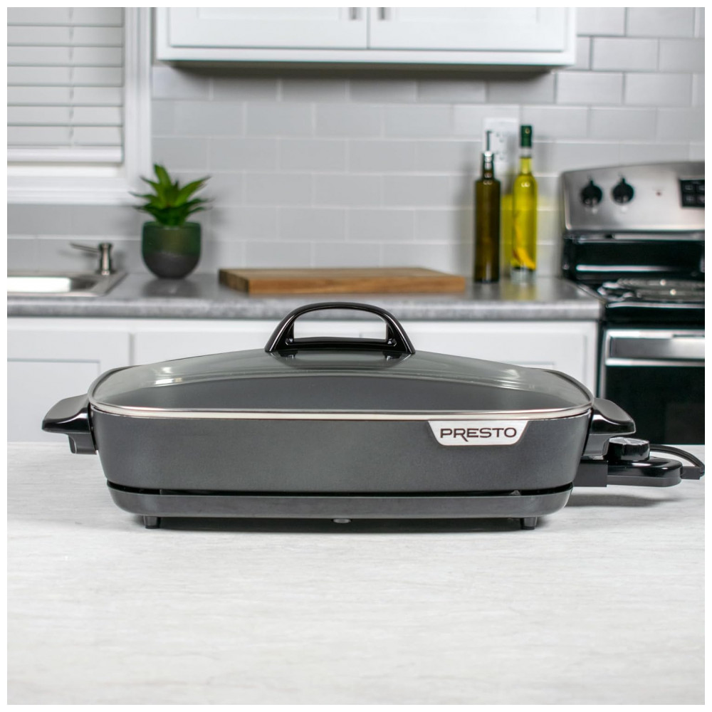 Frigideira Elétrica Antiaderente com Tampa de Vidro, 1500W, 110V, PRESTO 06858, Cinza Escuro